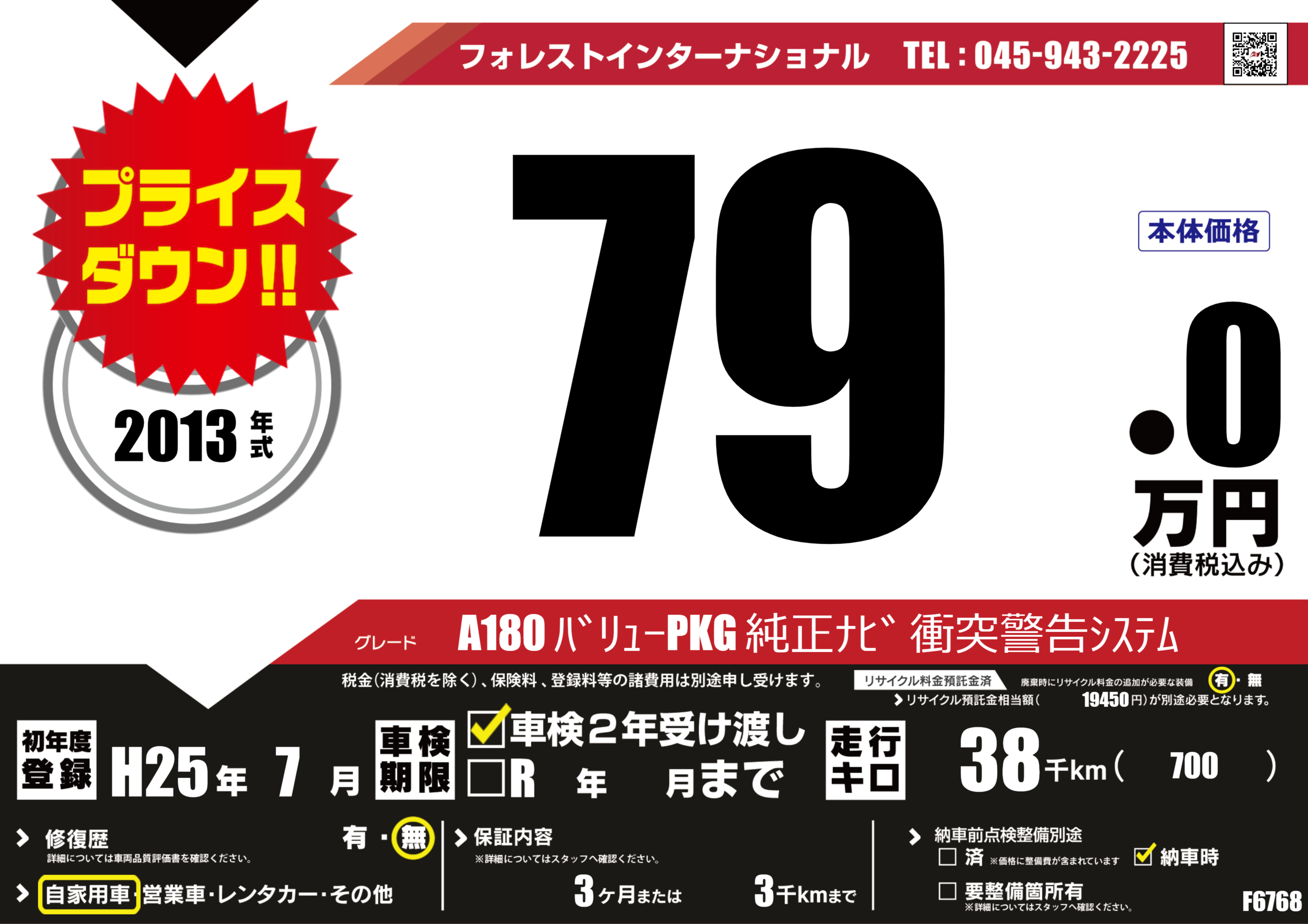 | 走行キロ | 3.8万km | 初年度登録 | H25年7月 |