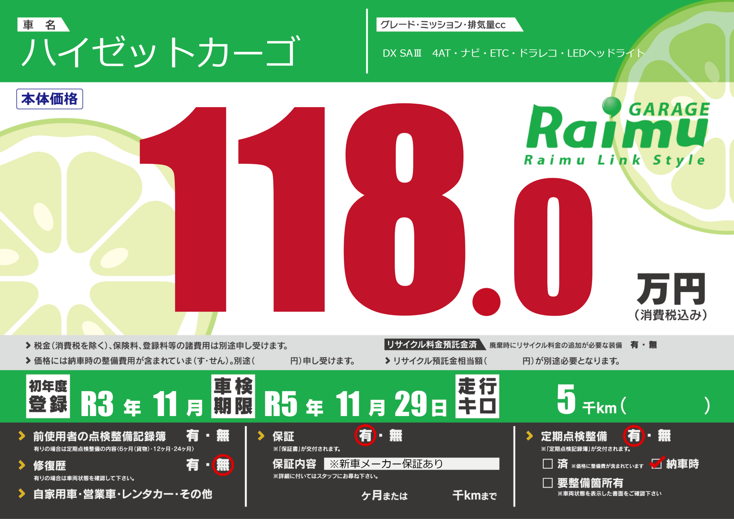 なし | 車検制限 | R5年11月29月 |