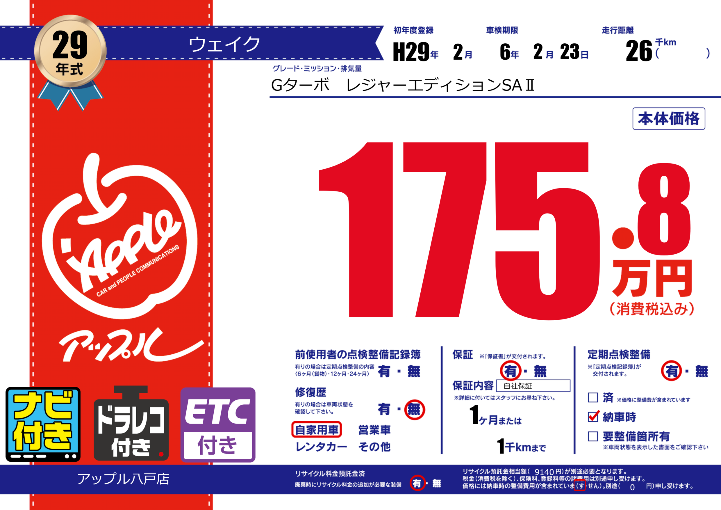 | 車名 | ウェイク | グレード ミッション 排気量 |