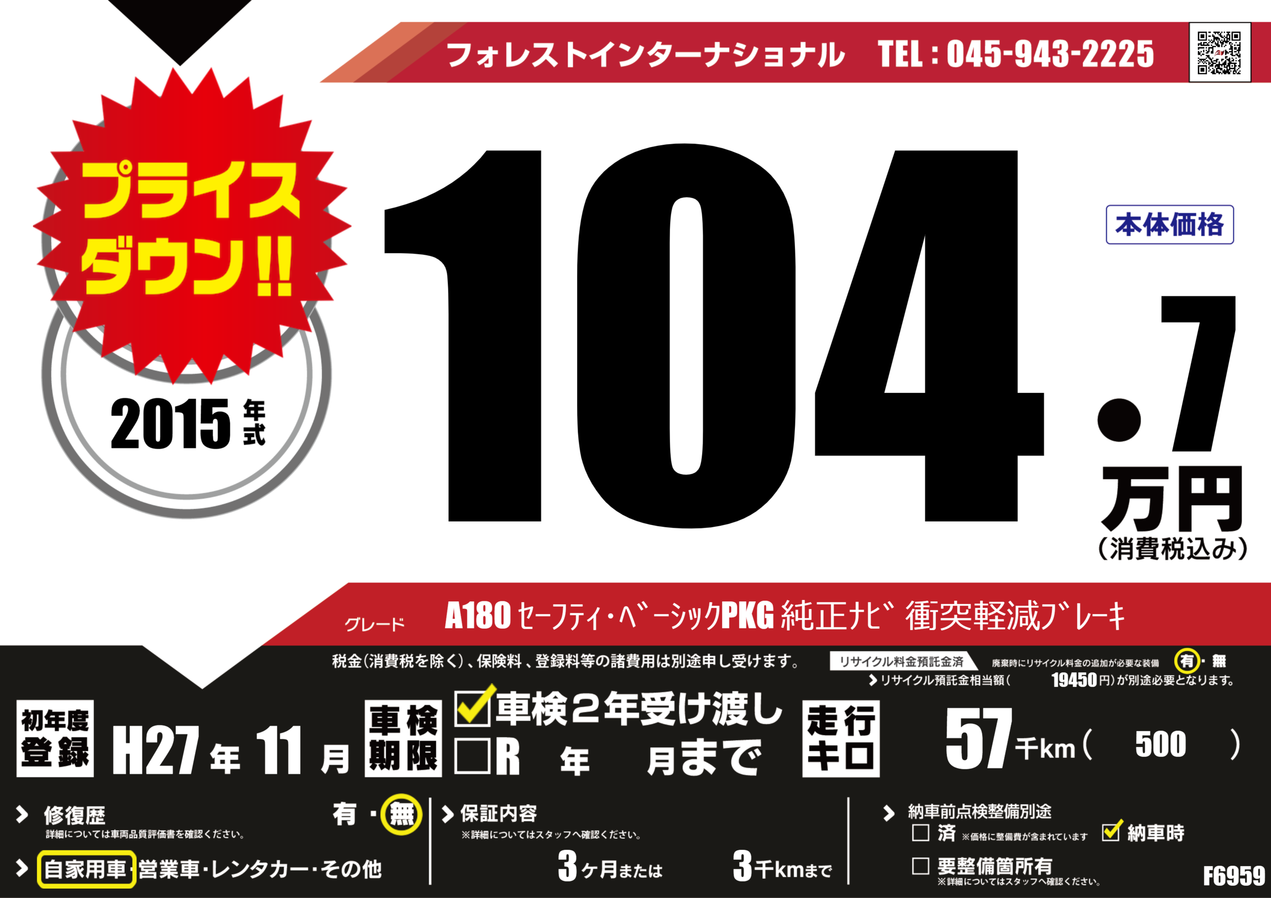 | 走行キロ | 5.7万km | 初年度登録 | H27年11月 |
