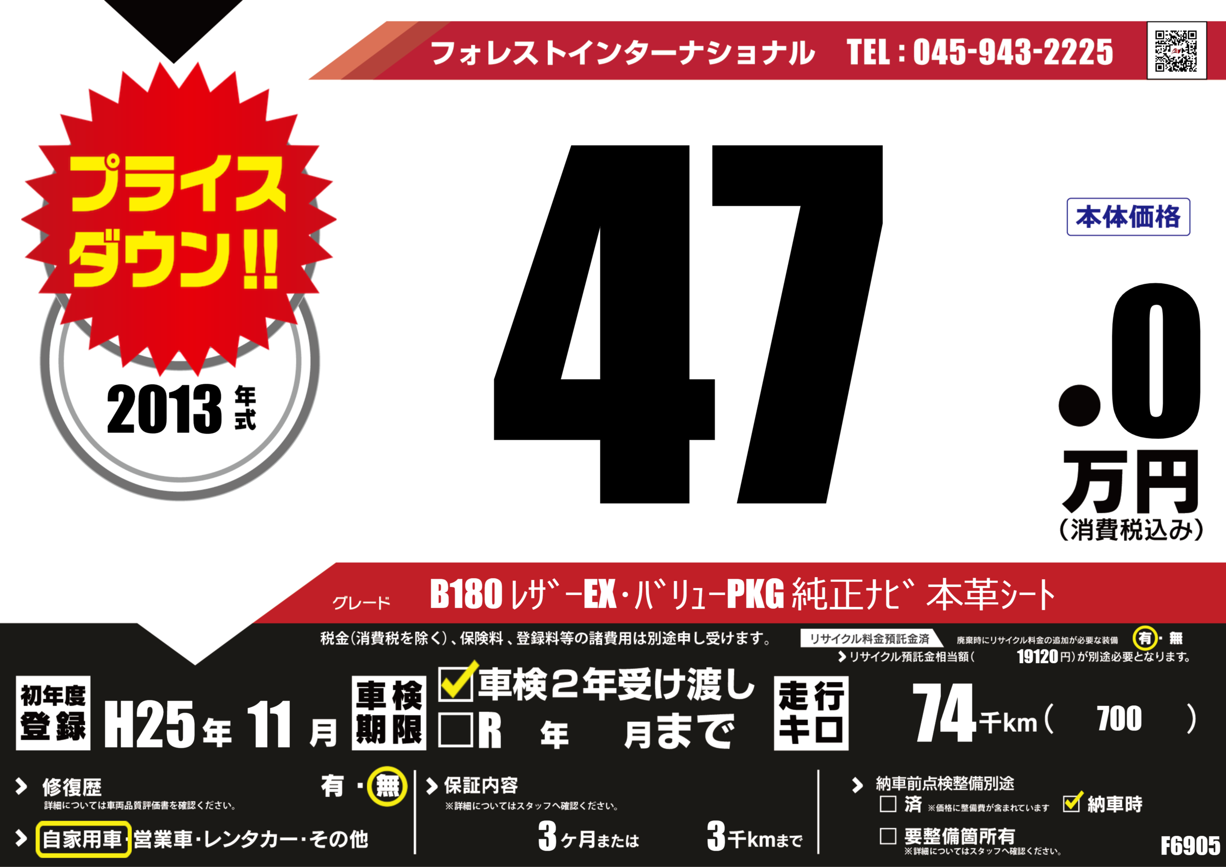 B180 レザーEX・バリューPKG 純正ナビ 本革シート |