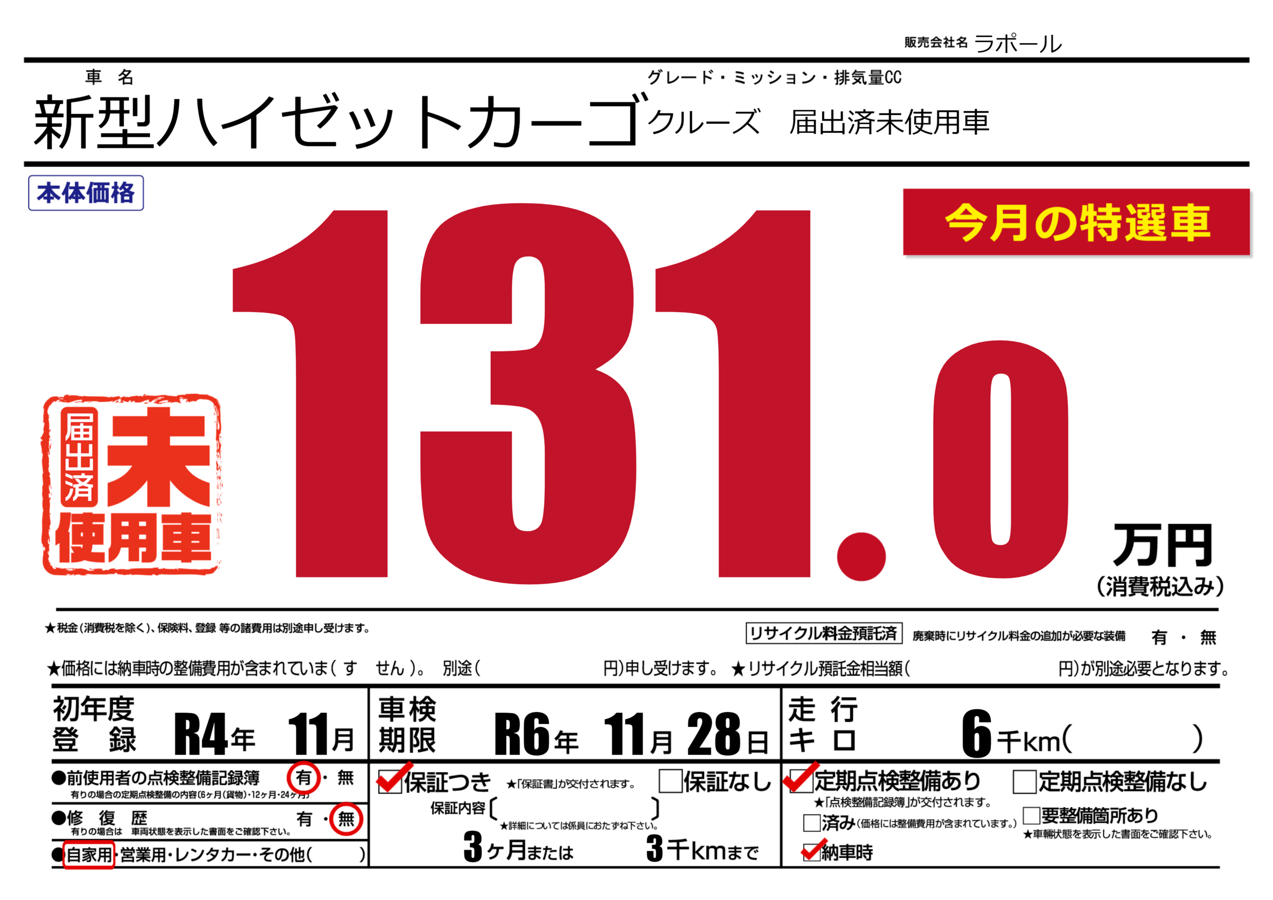 なし | 車検制限 | R6年11月28月 |
