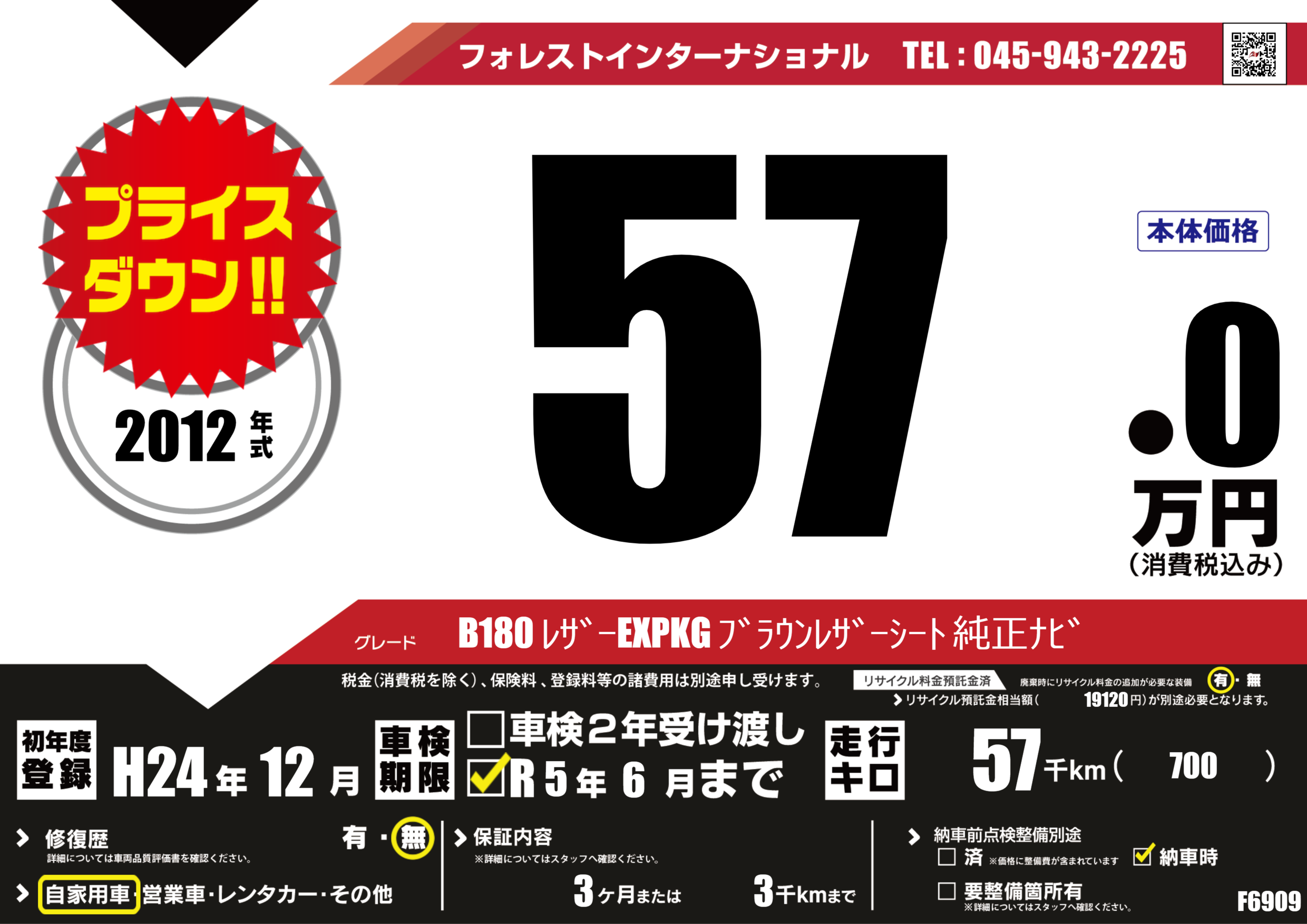 | 走行キロ | 5.7万km | 初年度登録 | H24年12月 |