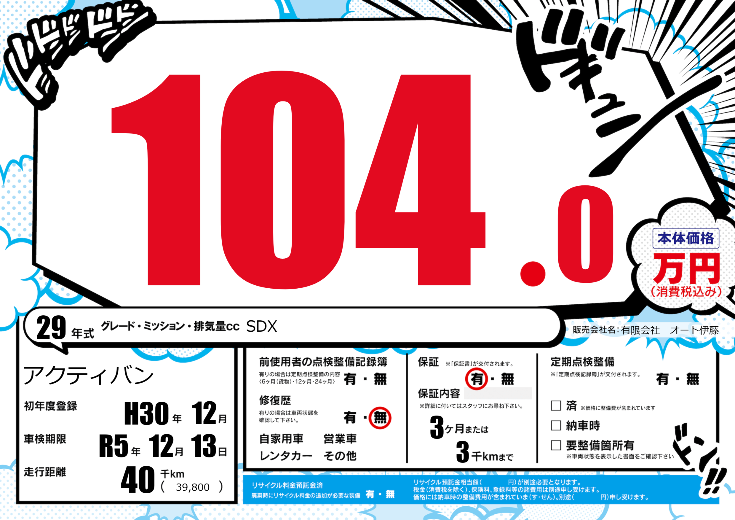 | 車名 | アクティバン | グレード ミッション 排気量 |