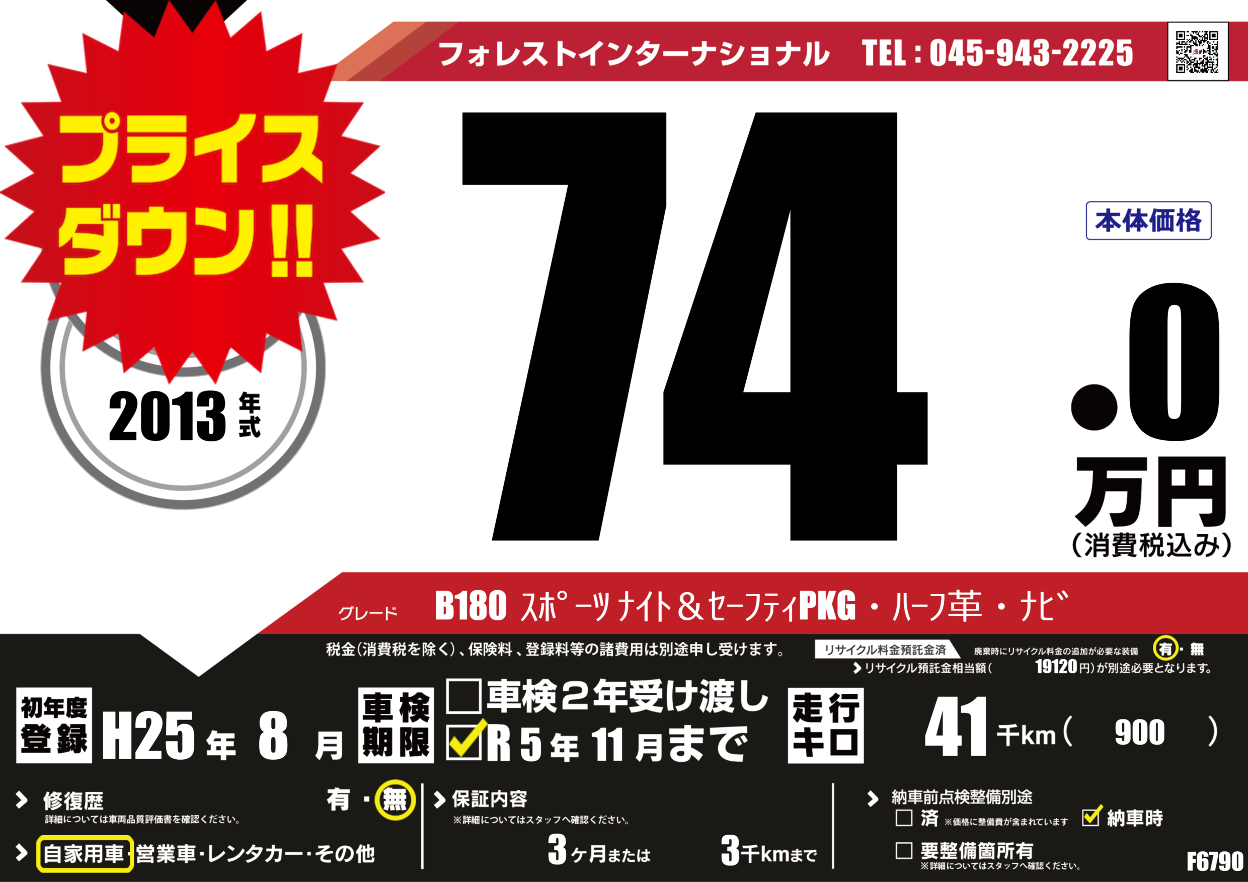 | 走行キロ | 4.1万km | 初年度登録 | H25年8月 |