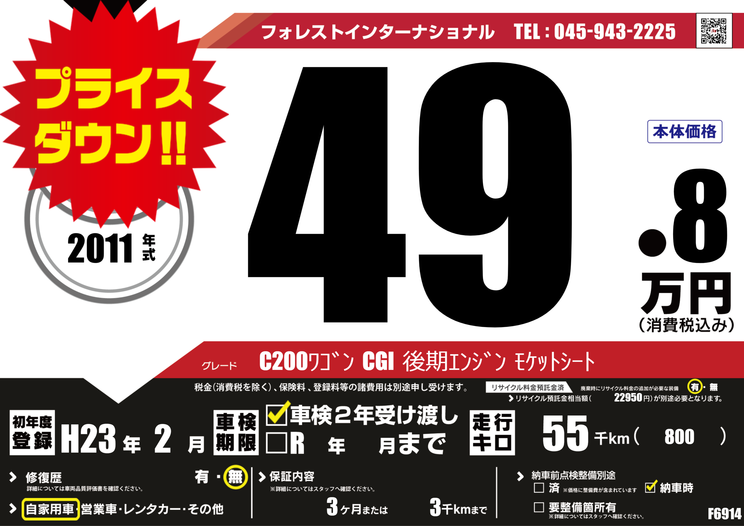 | 走行キロ | 5.5万km | 初年度登録 | H23年2月 |