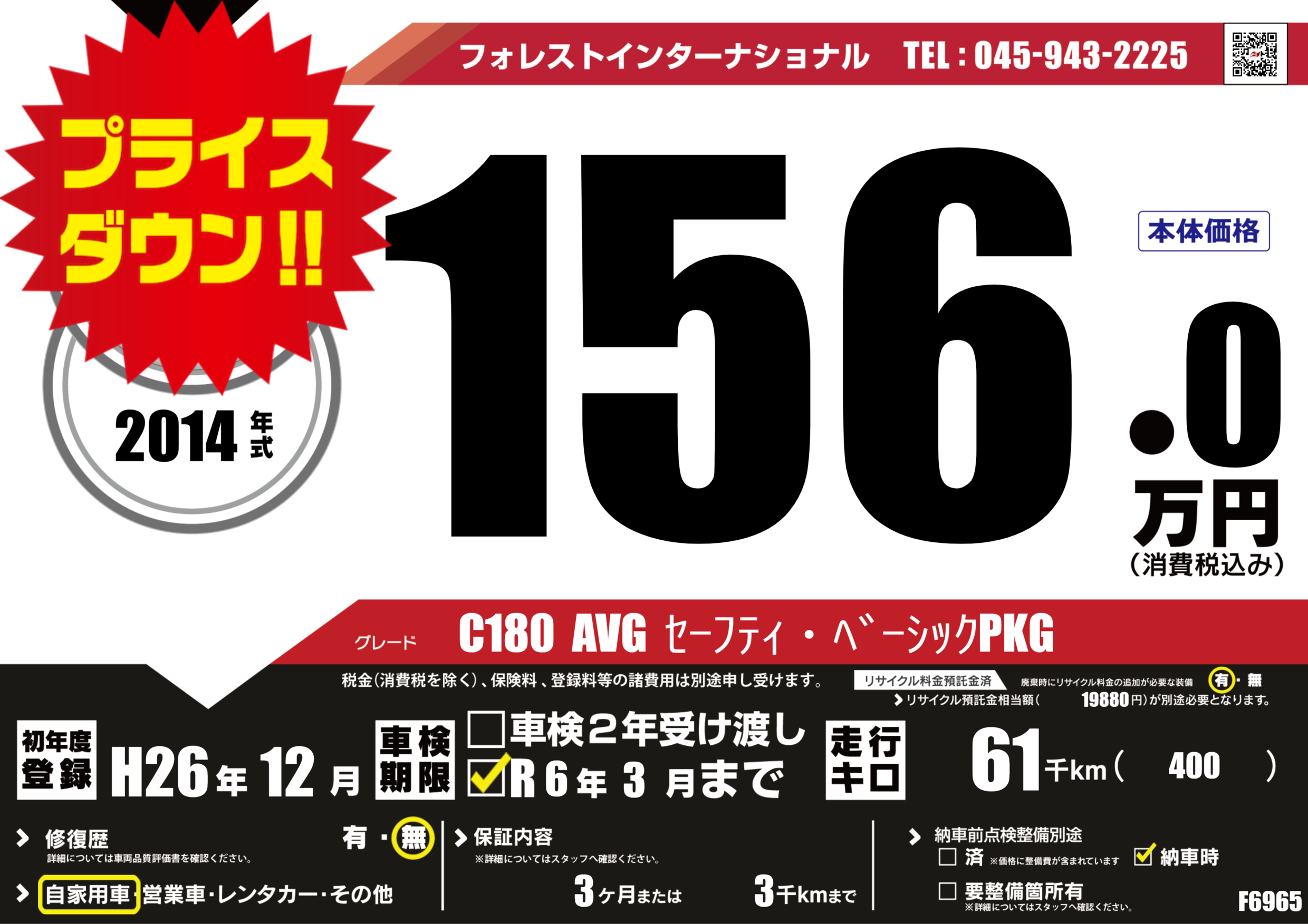 | 走行キロ | 6.1万km | 初年度登録 | H26年12月 |