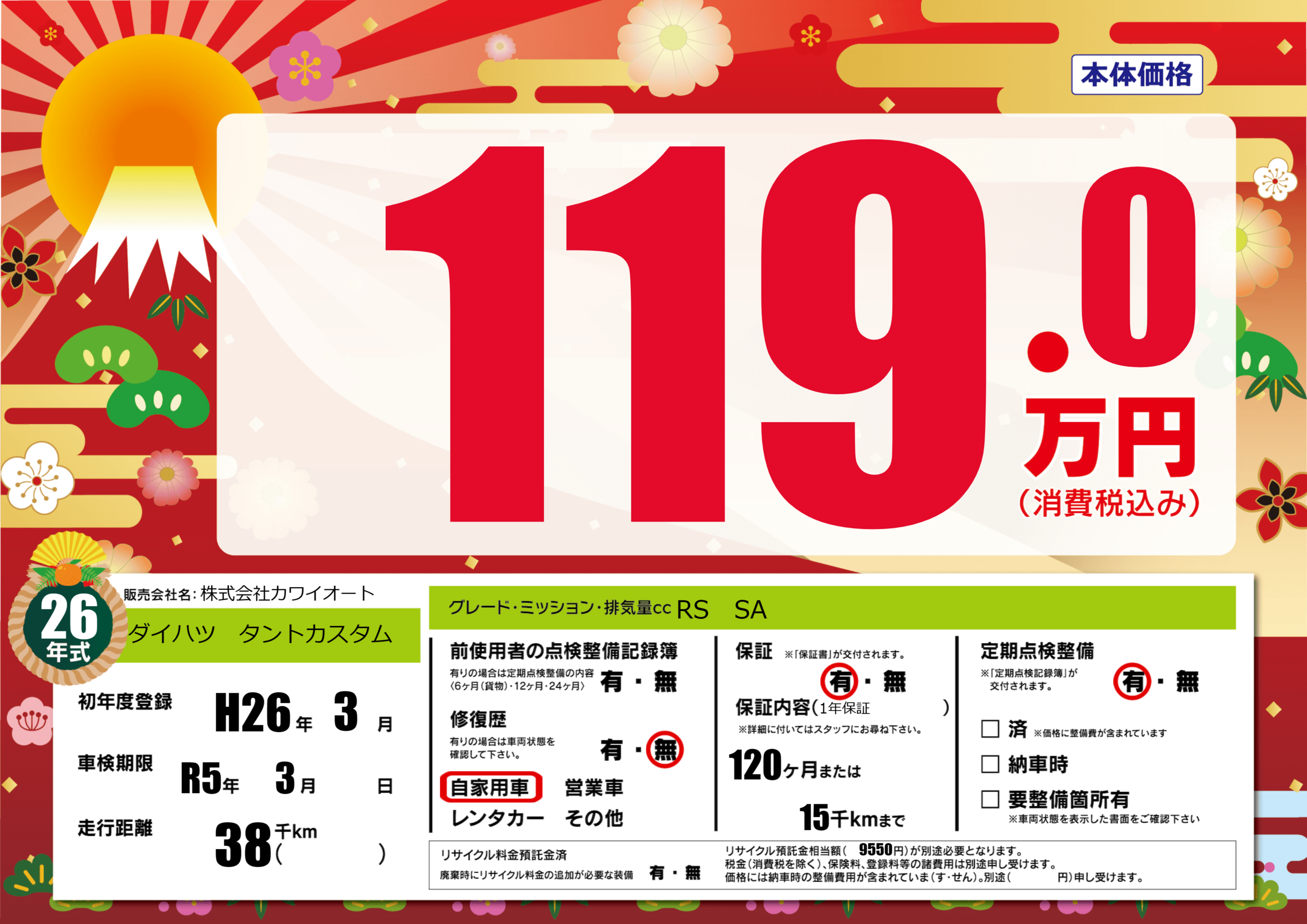 | 走行キロ | 3.8万km | ||