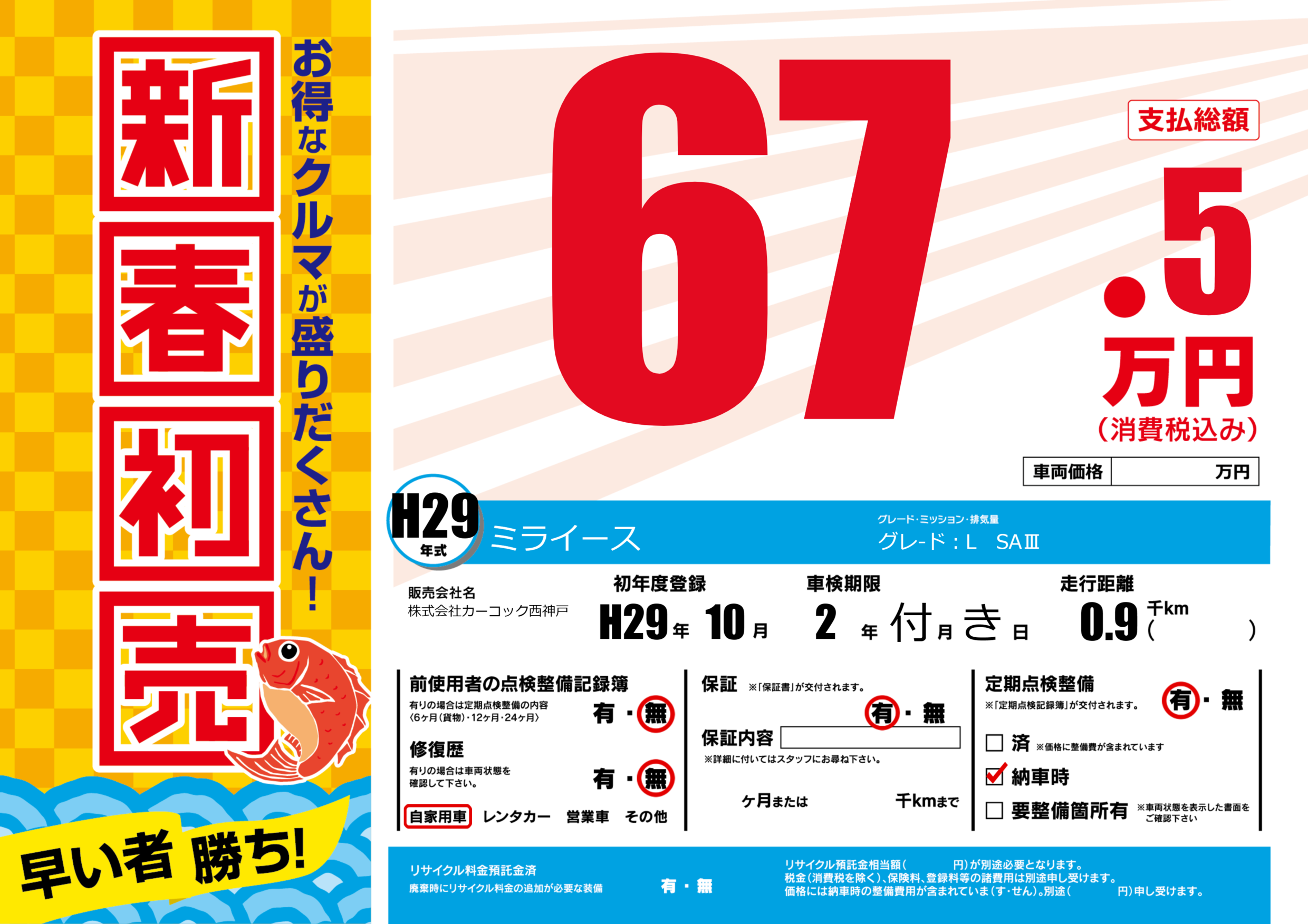 | 定期点検整備 | 定期点検整備あり 納車時あり | ||