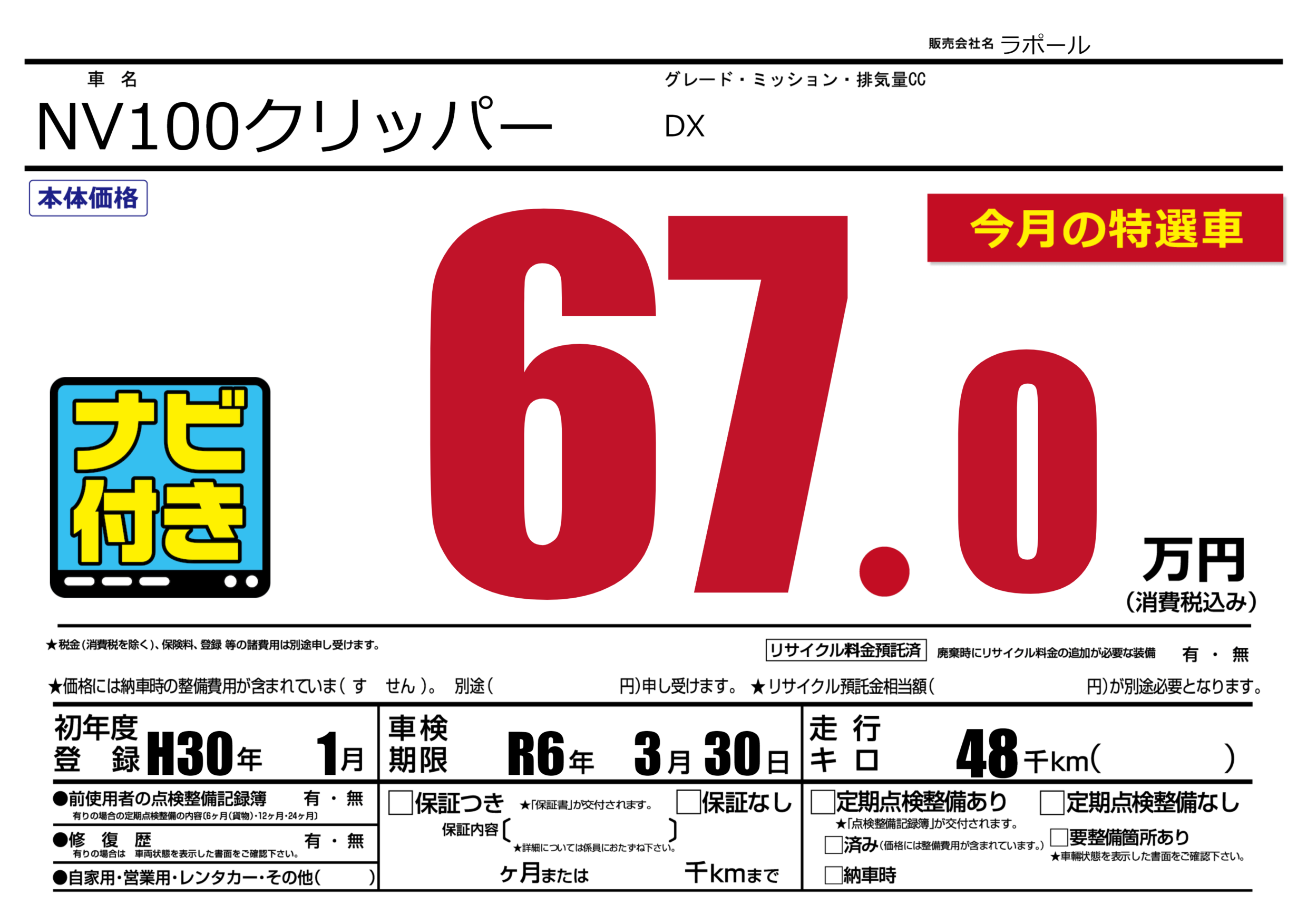 | 車検制限 | R6年 3月 30日 | ||