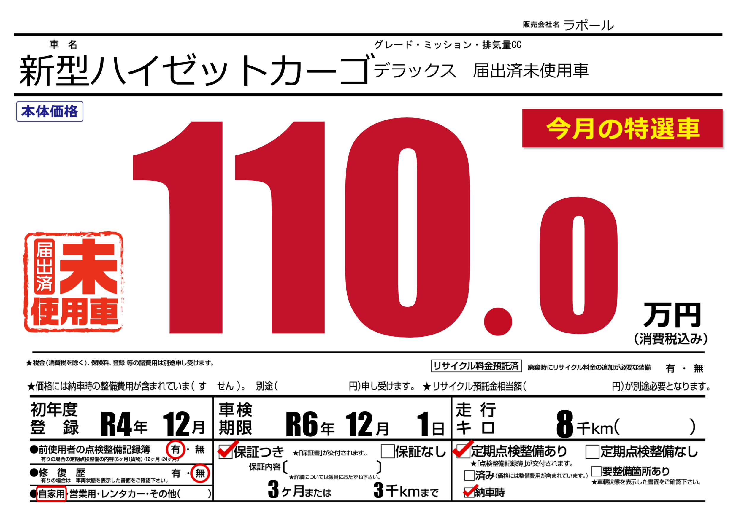 保証付き 保証内容(---) 3ヶ月または(3)千kmまで |