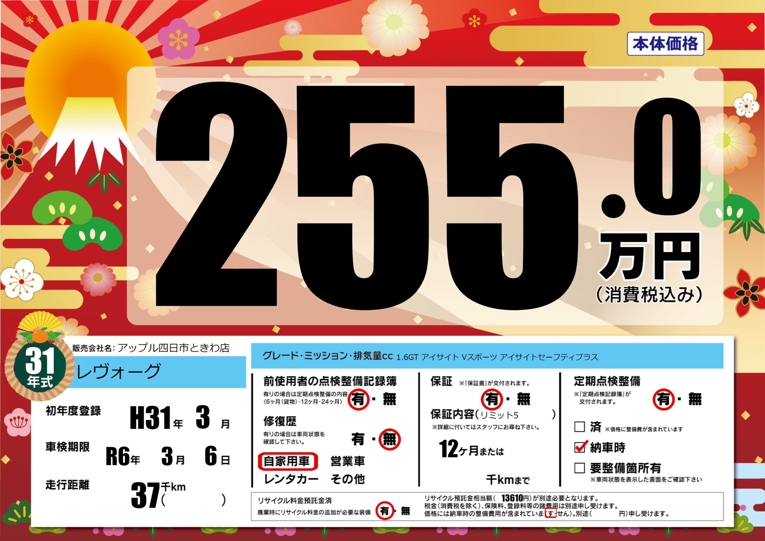 | 車名 | レヴォーグ | グレード ミッション 排気量 |