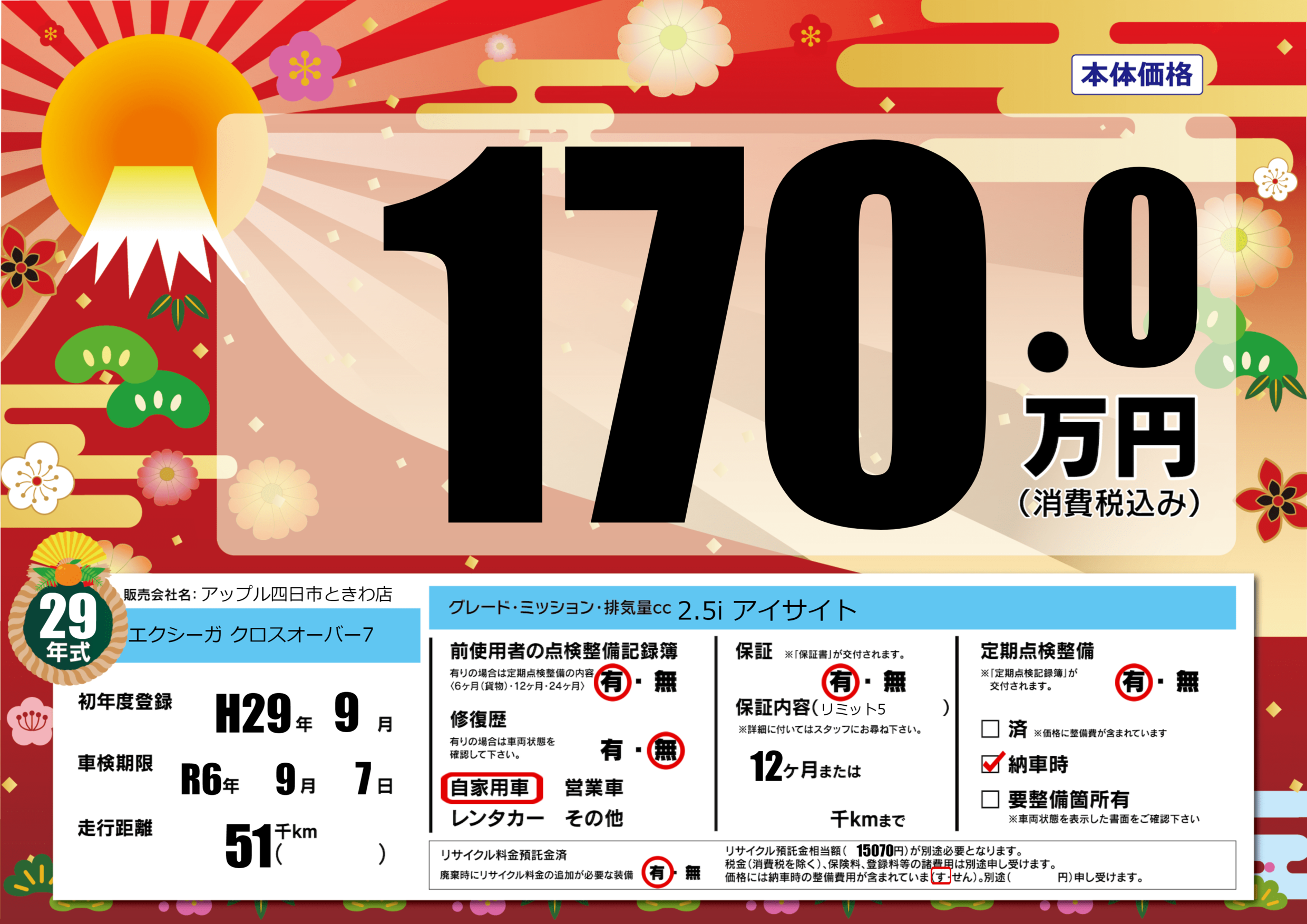 | 走行キロ | 5.1万km | 初年度登録 | H29年9月 |