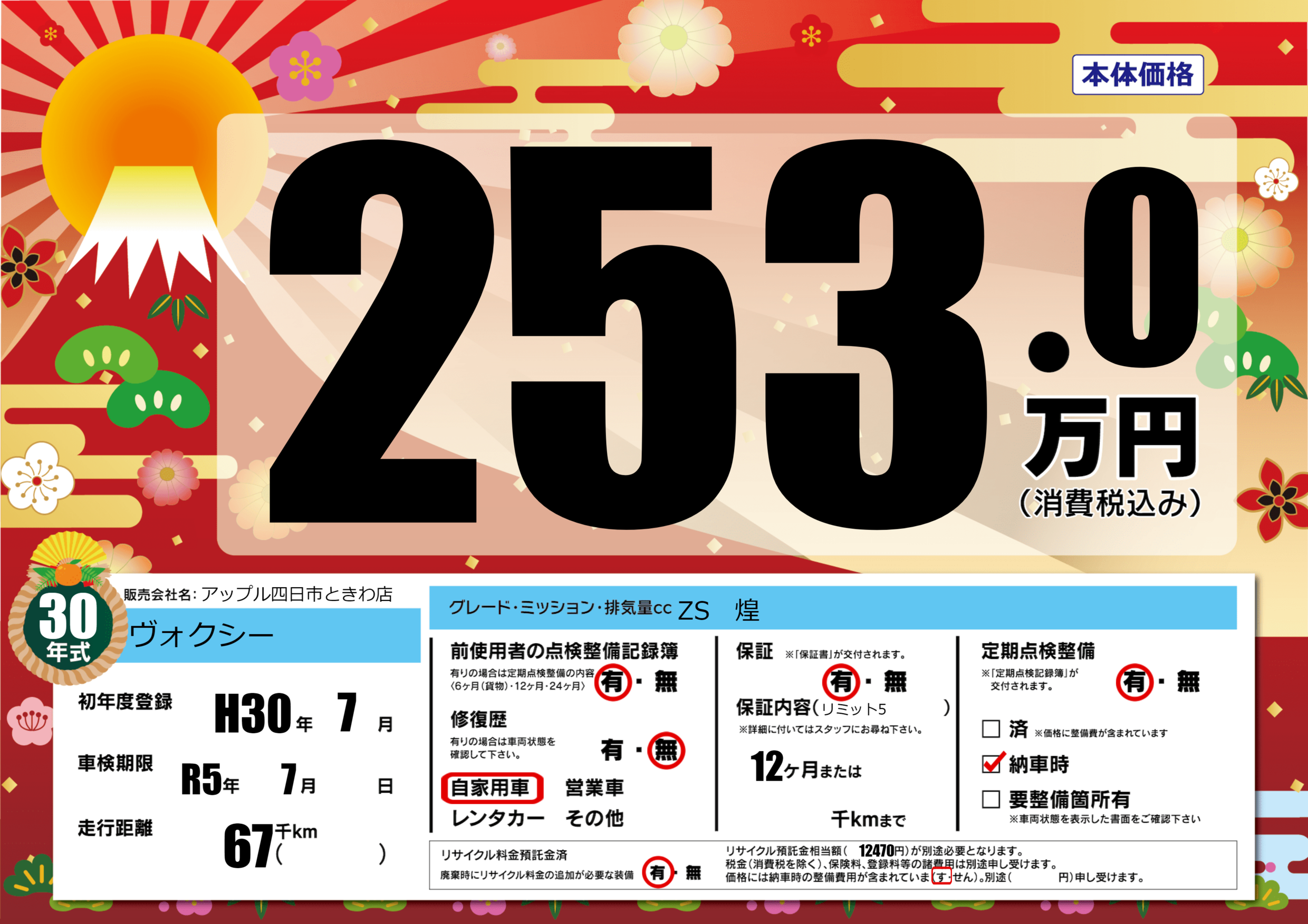 | 走行キロ | 6.7万km | 初年度登録 | H30年7月 |