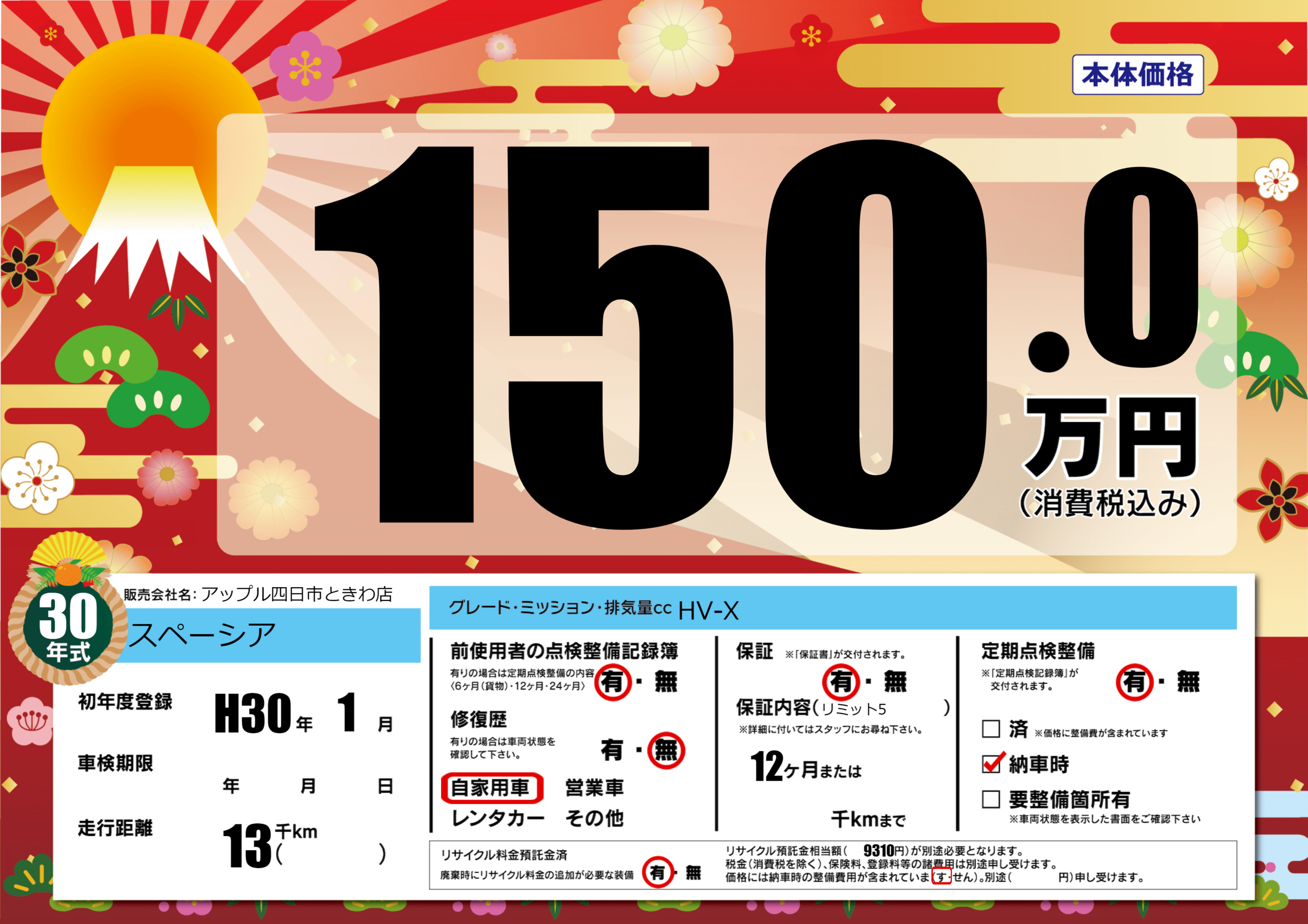 | 初年度登録 | H30年1月 | ||