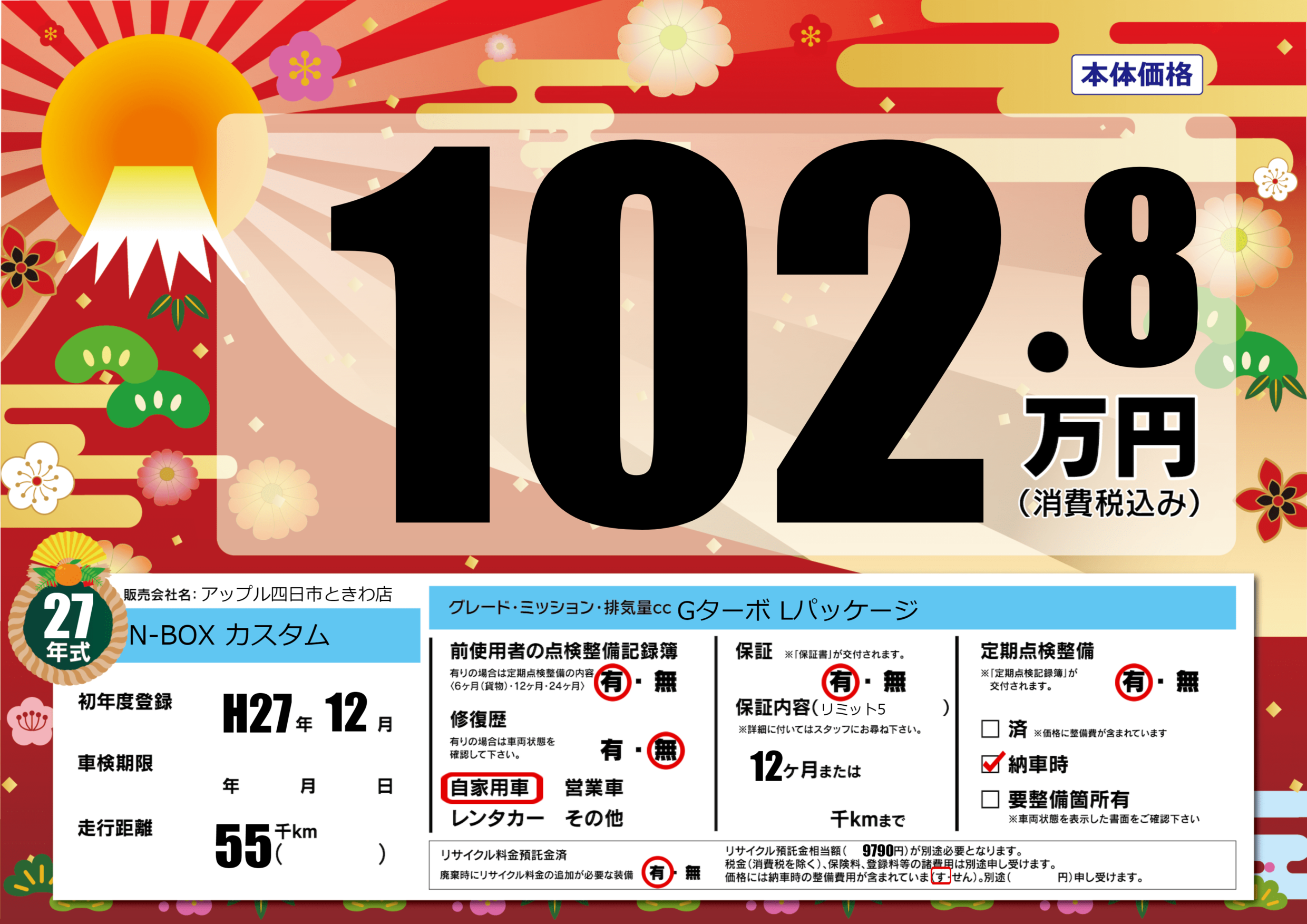 | 初年度登録 | H27年12月 | ||