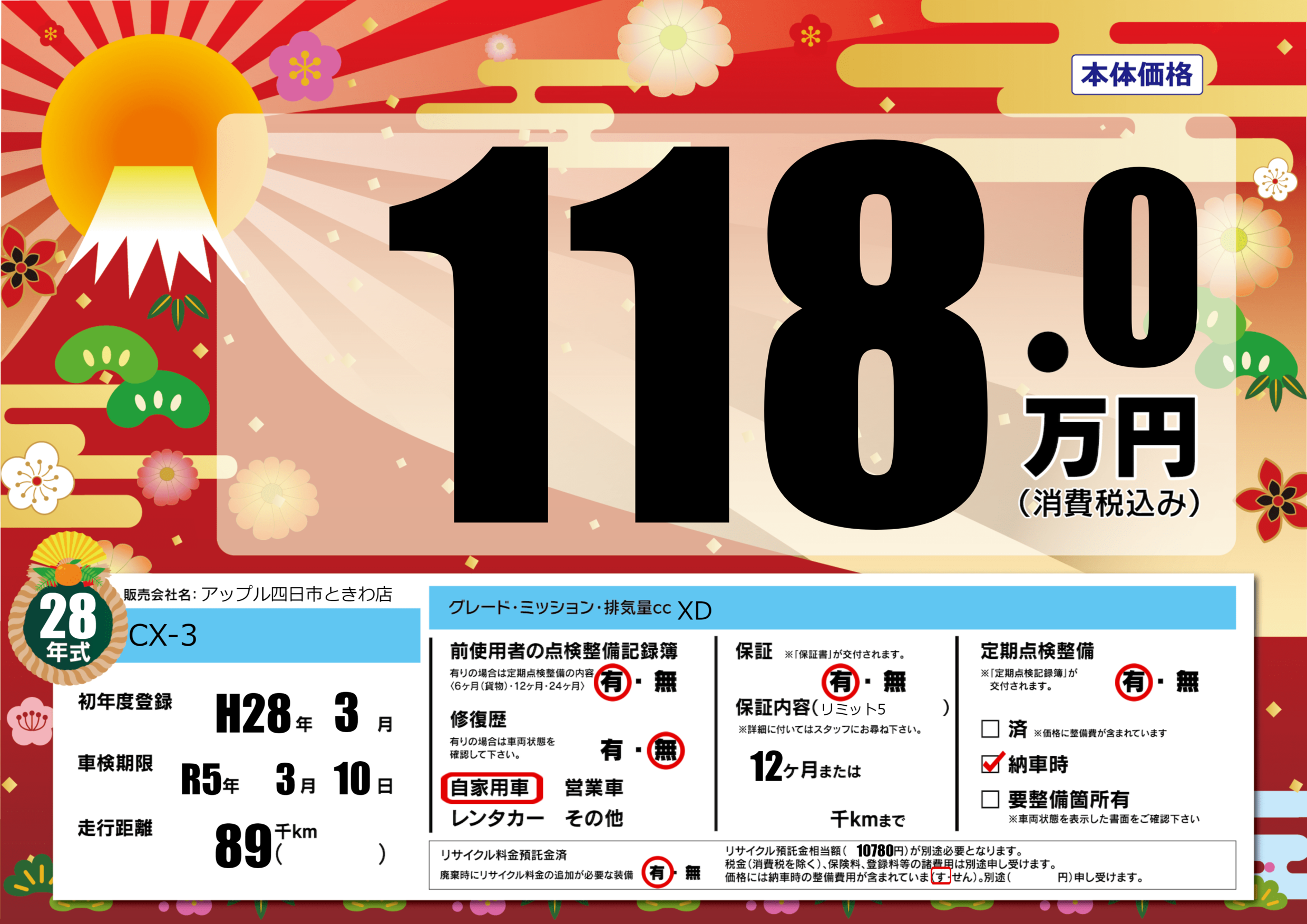 | 車検制限 | R5年 3月 10日 | ||