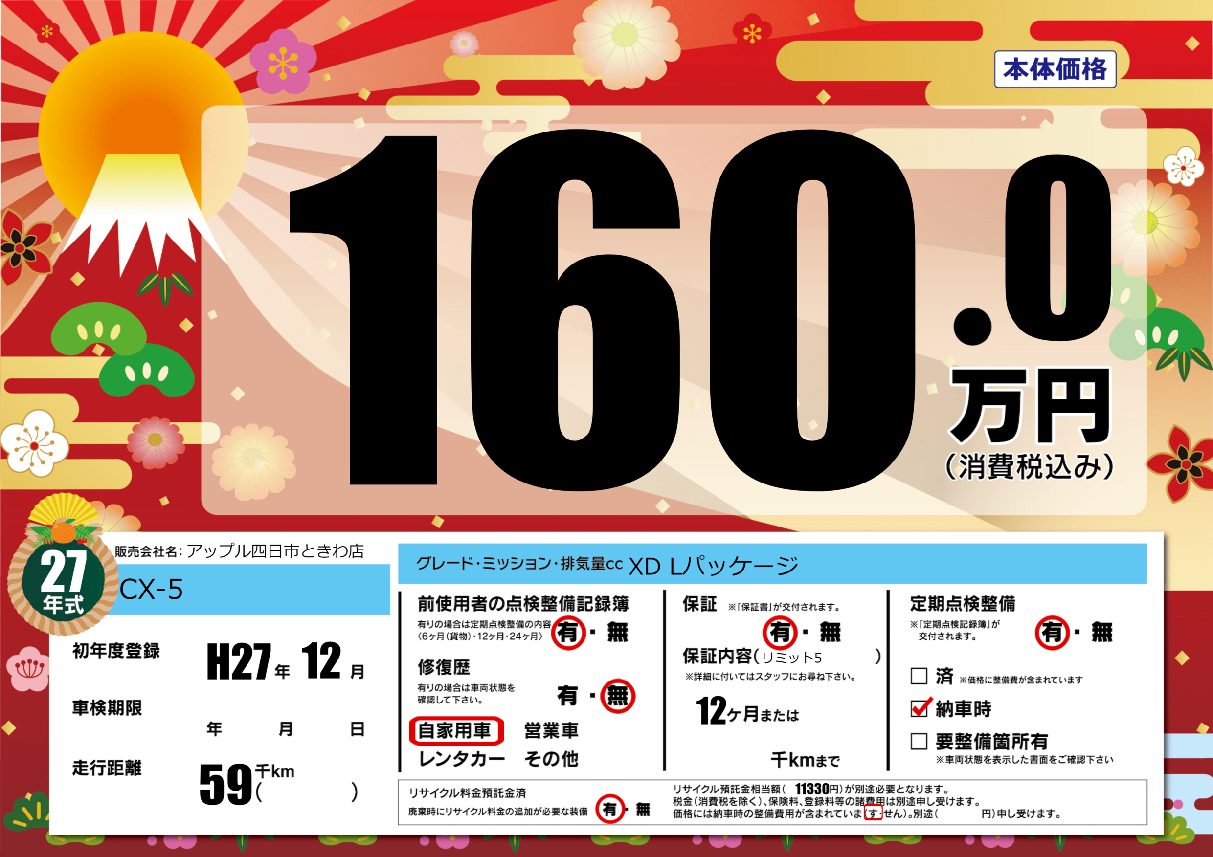 | 車名 | CX-5 | グレード ミッション 排気量 |