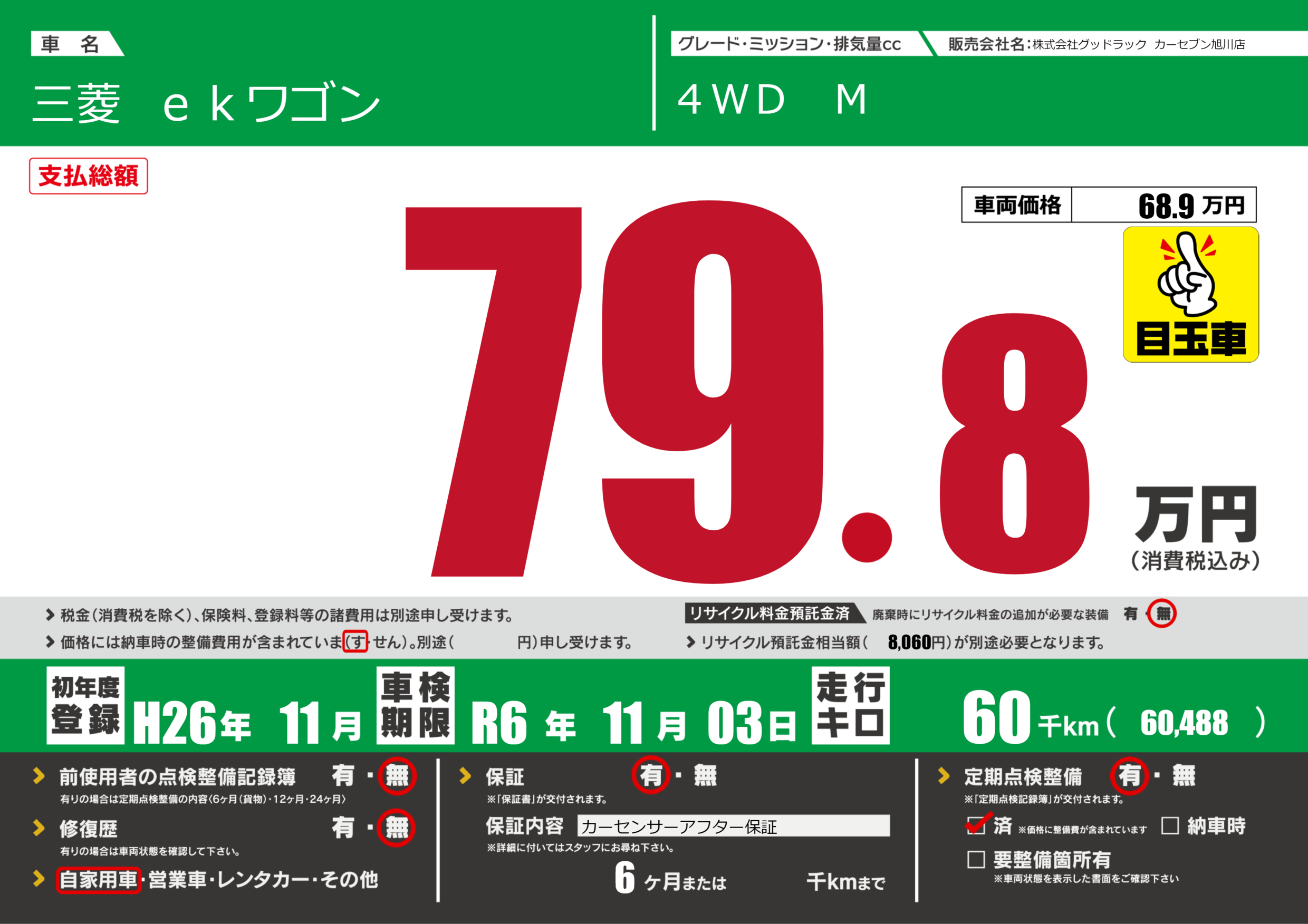 | 定期点検整備 | 定期点検整備あり 定期点検整備済み | ||