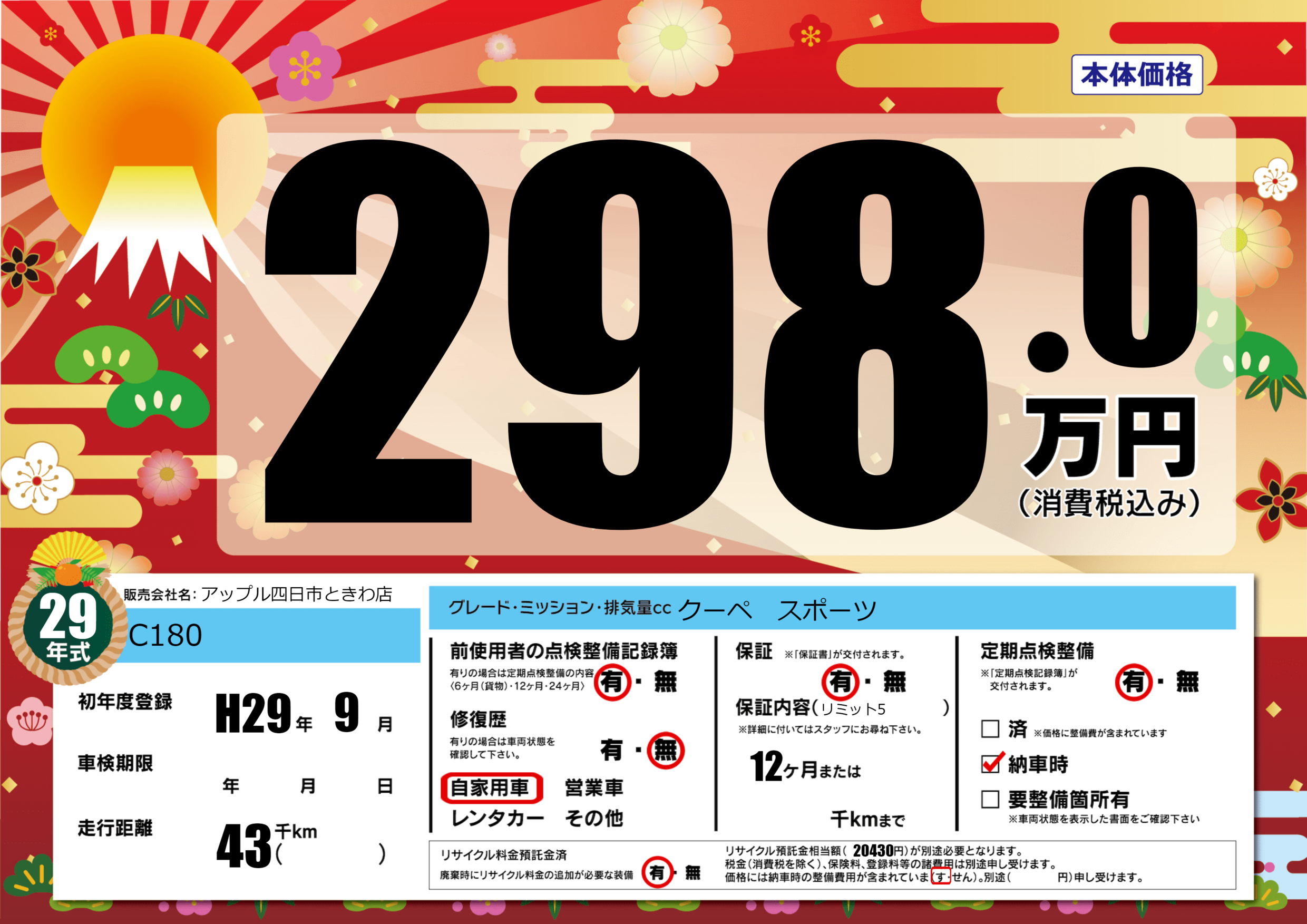 | 走行キロ | 4.3万km | 初年度登録 | H29年9月 |