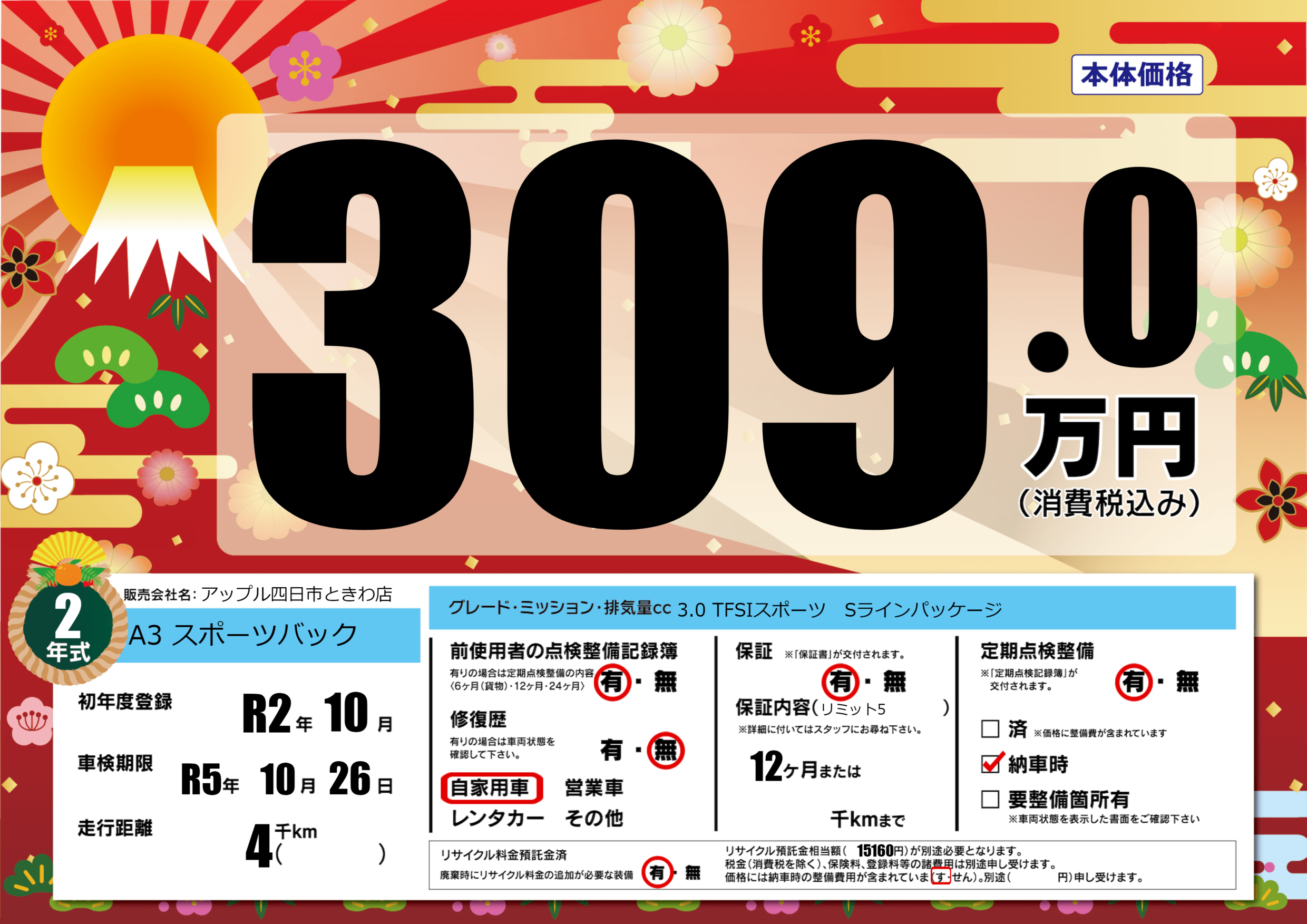 | 車名 | A3 スポーツバック | グレード ミッション 排気量 |