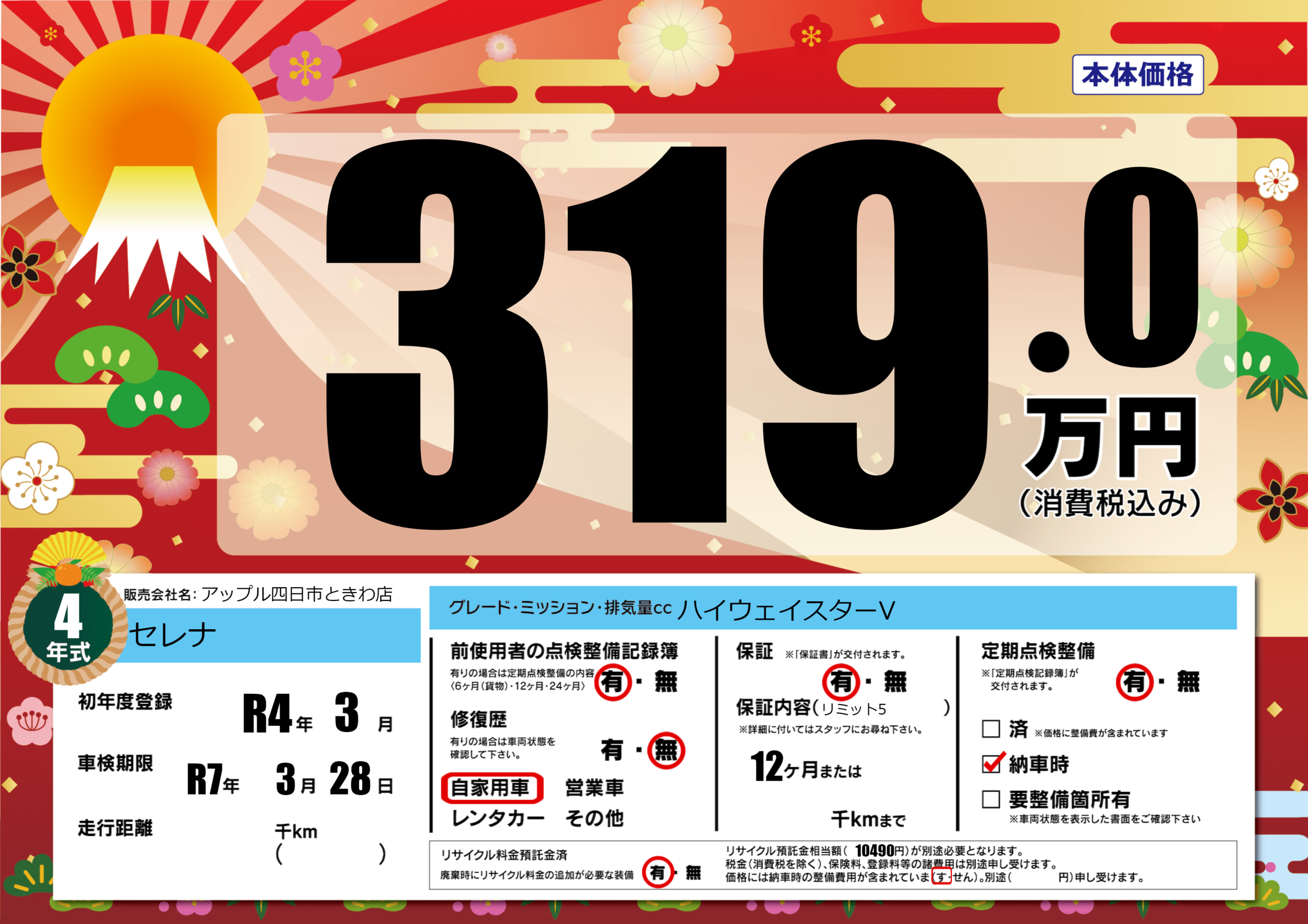 | 走行キロ | - | 初年度登録 | R4年3月 |
