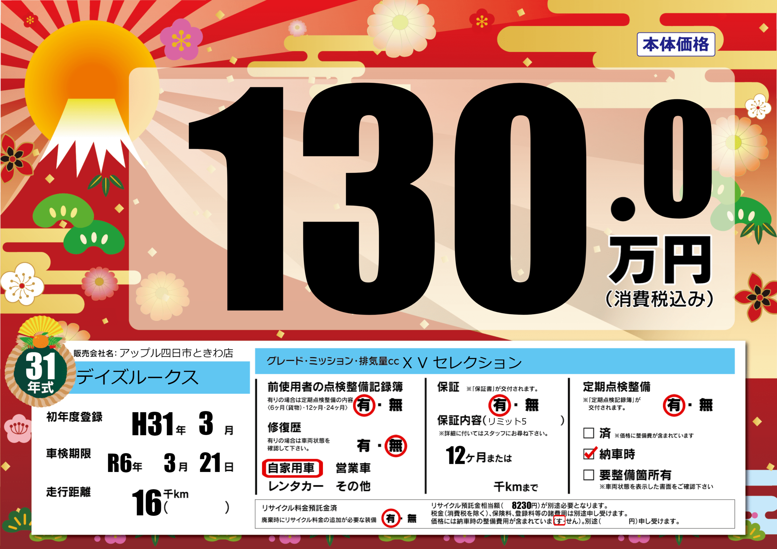 | 初年度登録 | H31年3月 | ||
