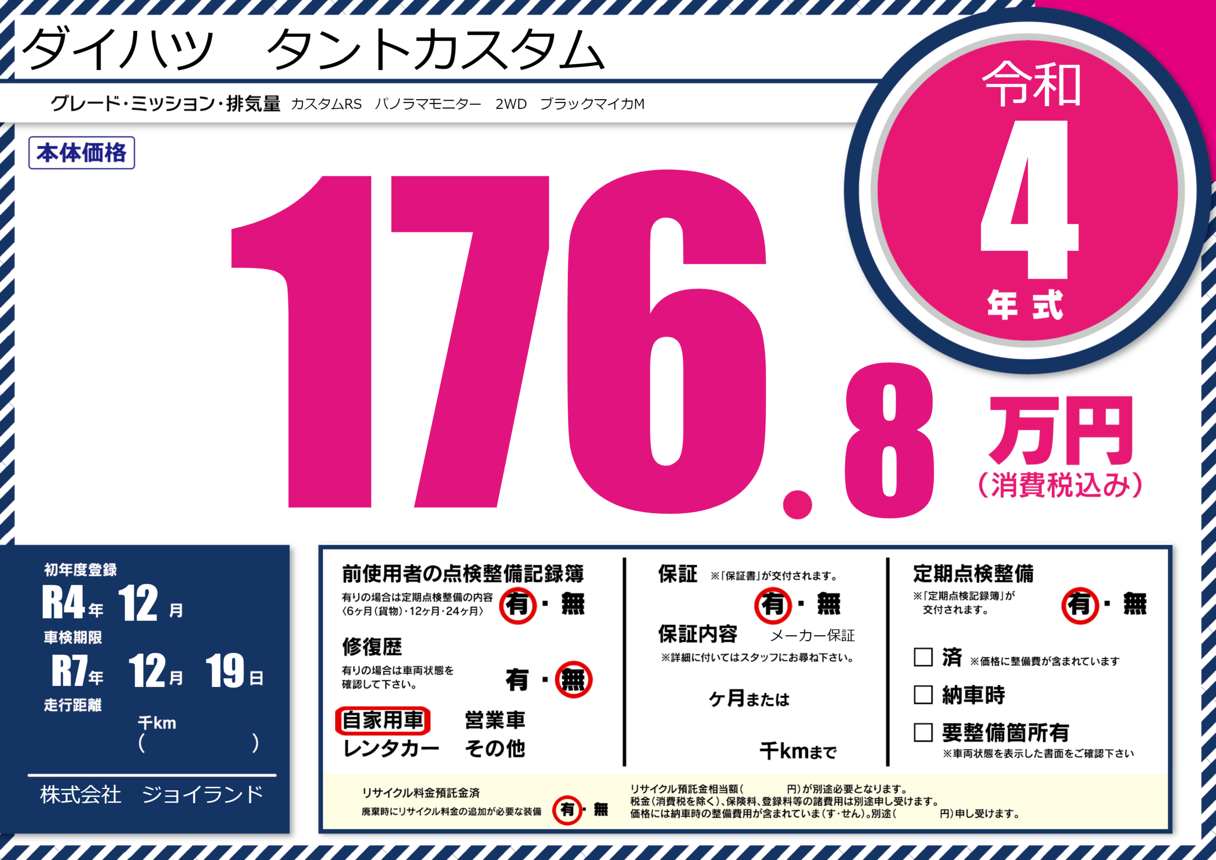 | 車検制限 | R7年 12月 19日 | ||