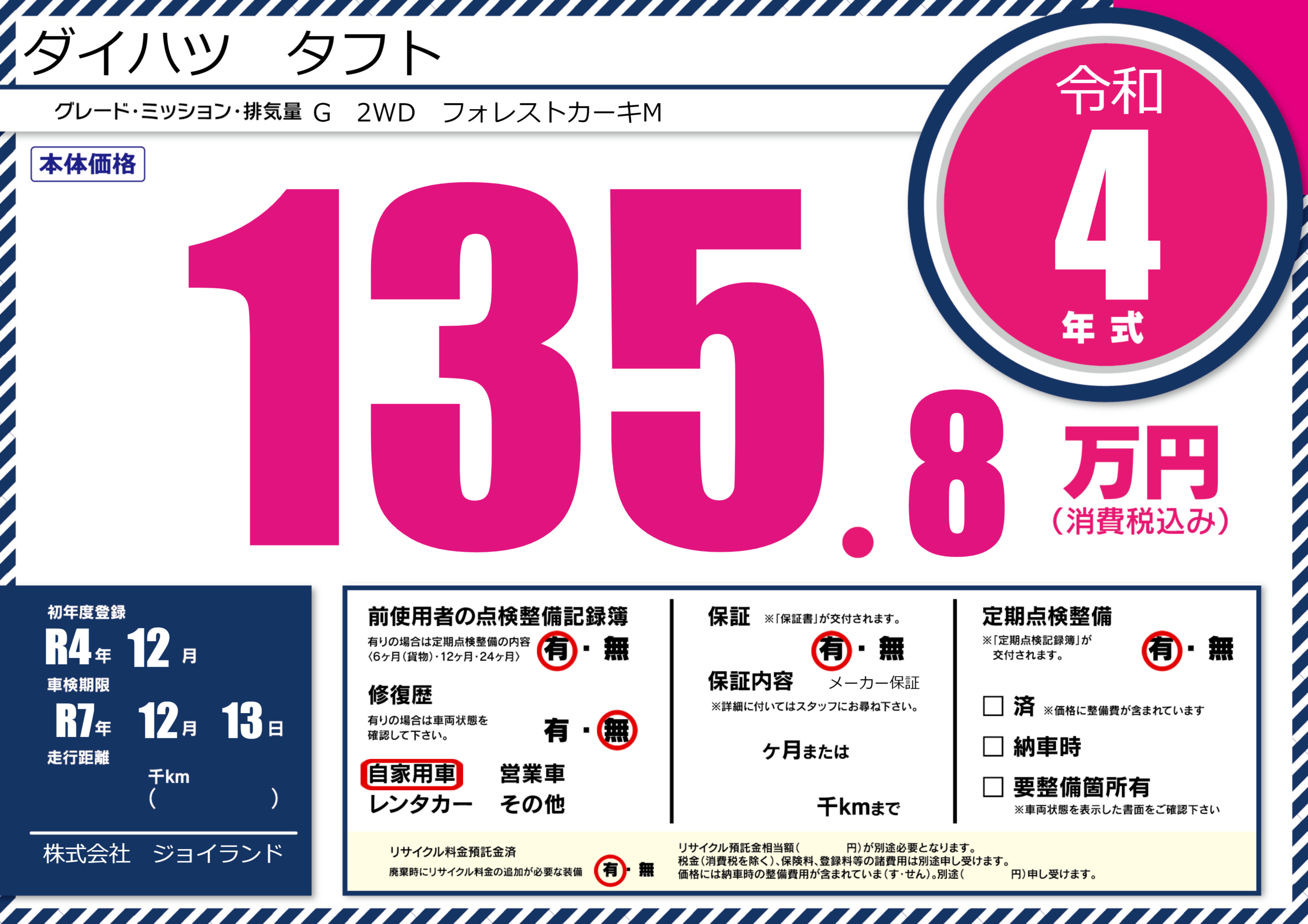 | 車検制限 | R7年 12月 13日 | ||