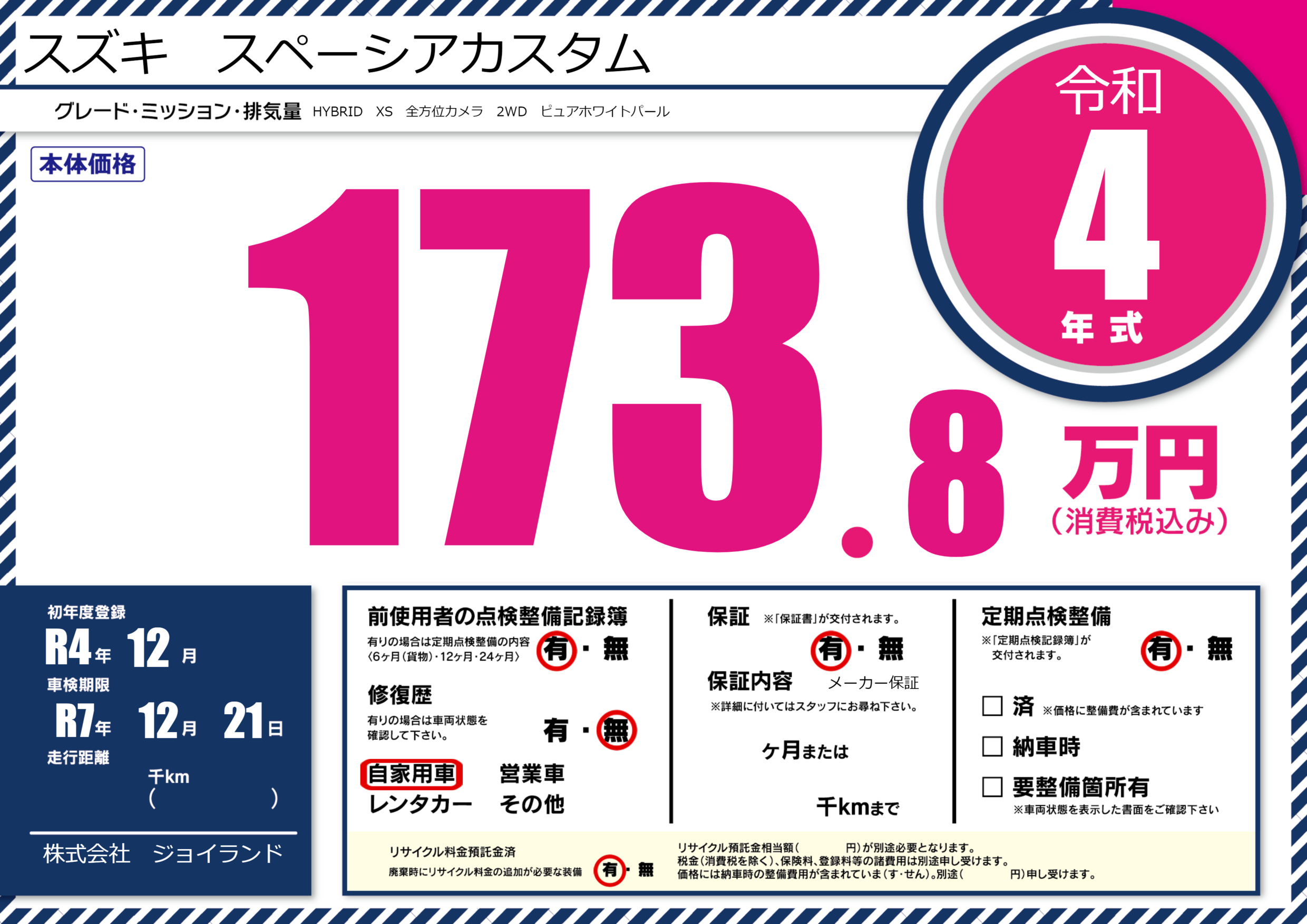 なし | 車検制限 | R7年12月21月 |
