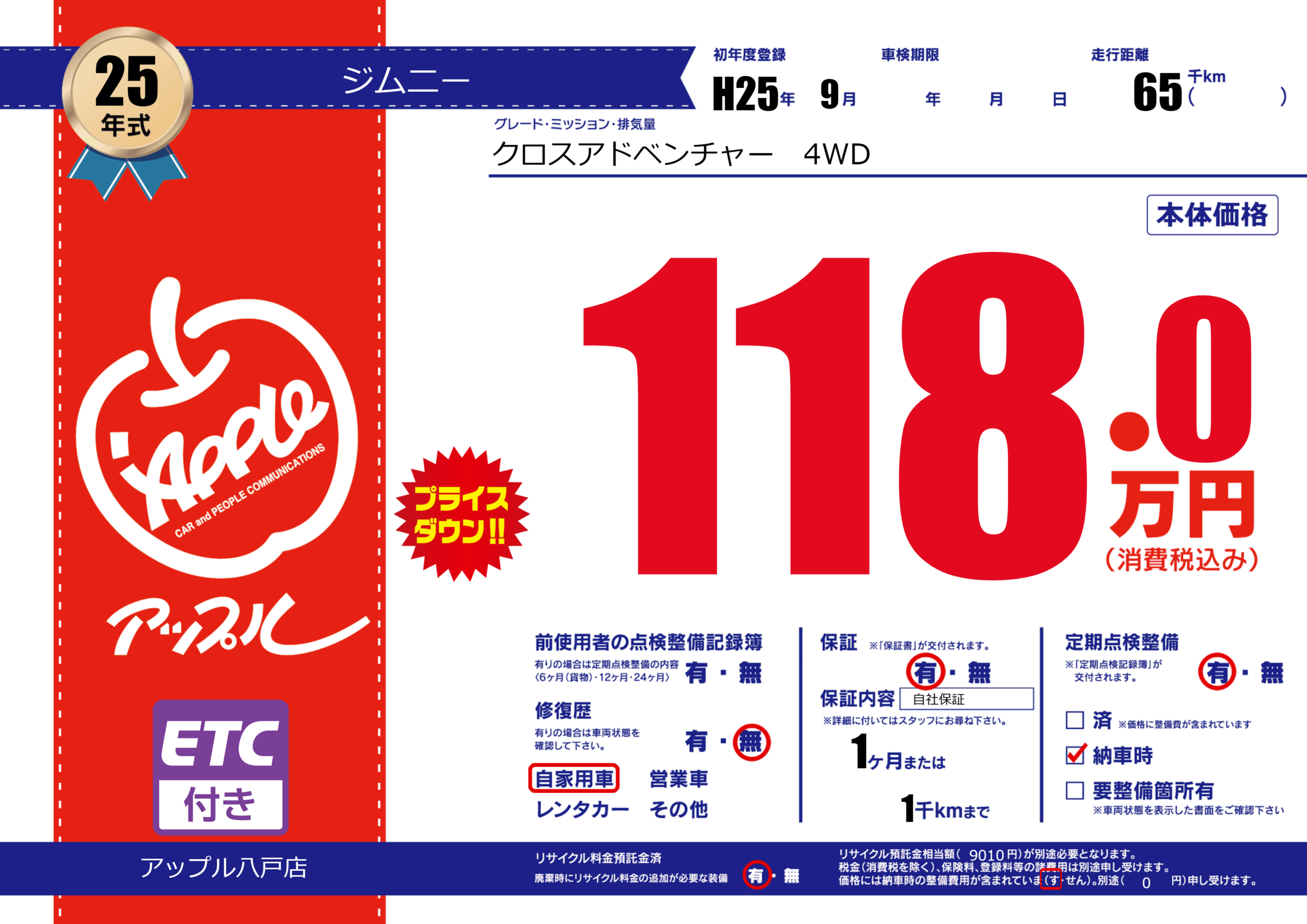 保証付き 保証内容( 自社保証) 1ヶ月または(1)千kmまで |