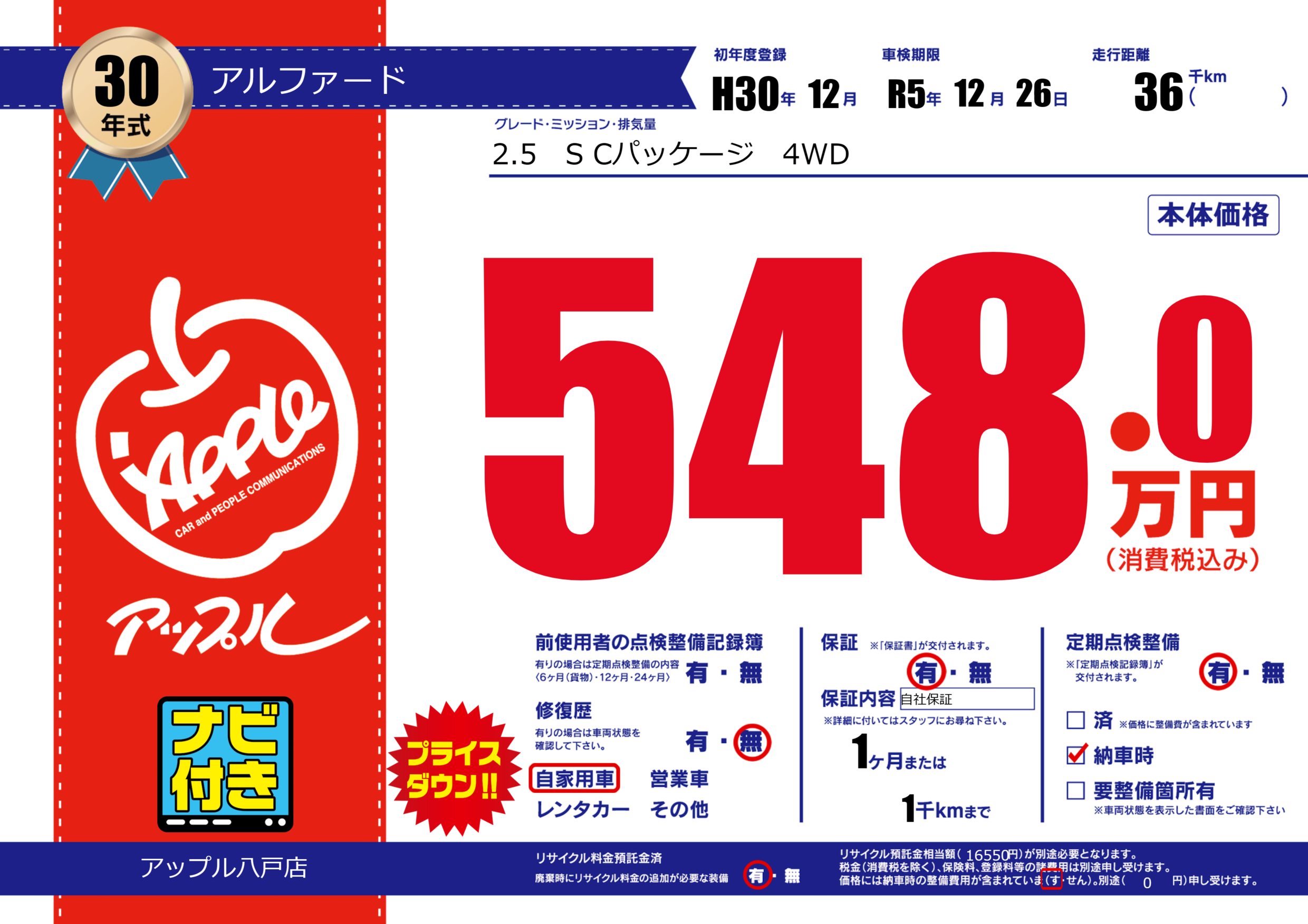 | 走行キロ | 3.6万km | 初年度登録 | H30年12月 |