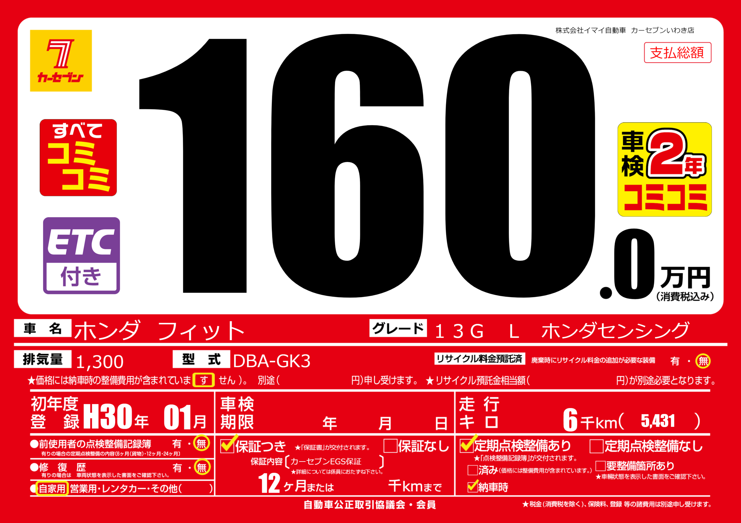 保証付き 保証内容(カーセブンEGS保証) 12ヶ月または千km |