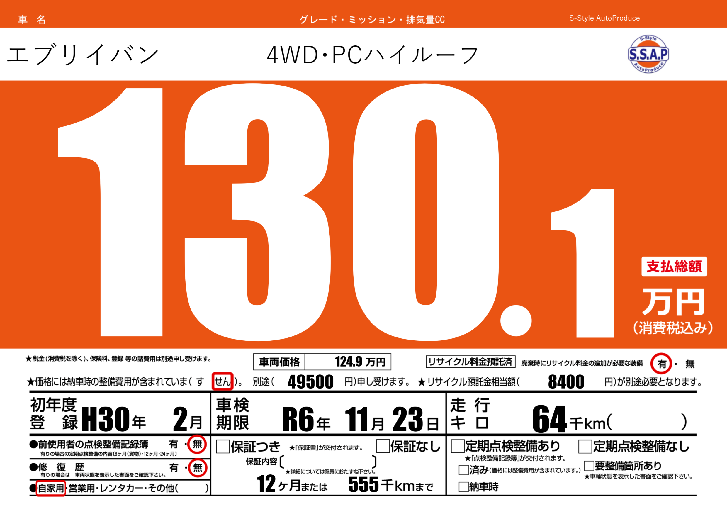 | 車名 | エブリイバン | グレード ミッション 排気量 |