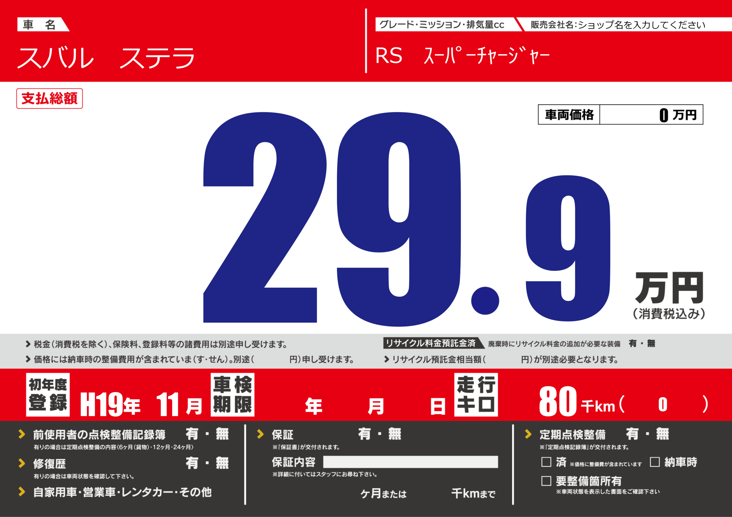 | 車名 | スバル ステラ | グレード ミッション 排気量 |