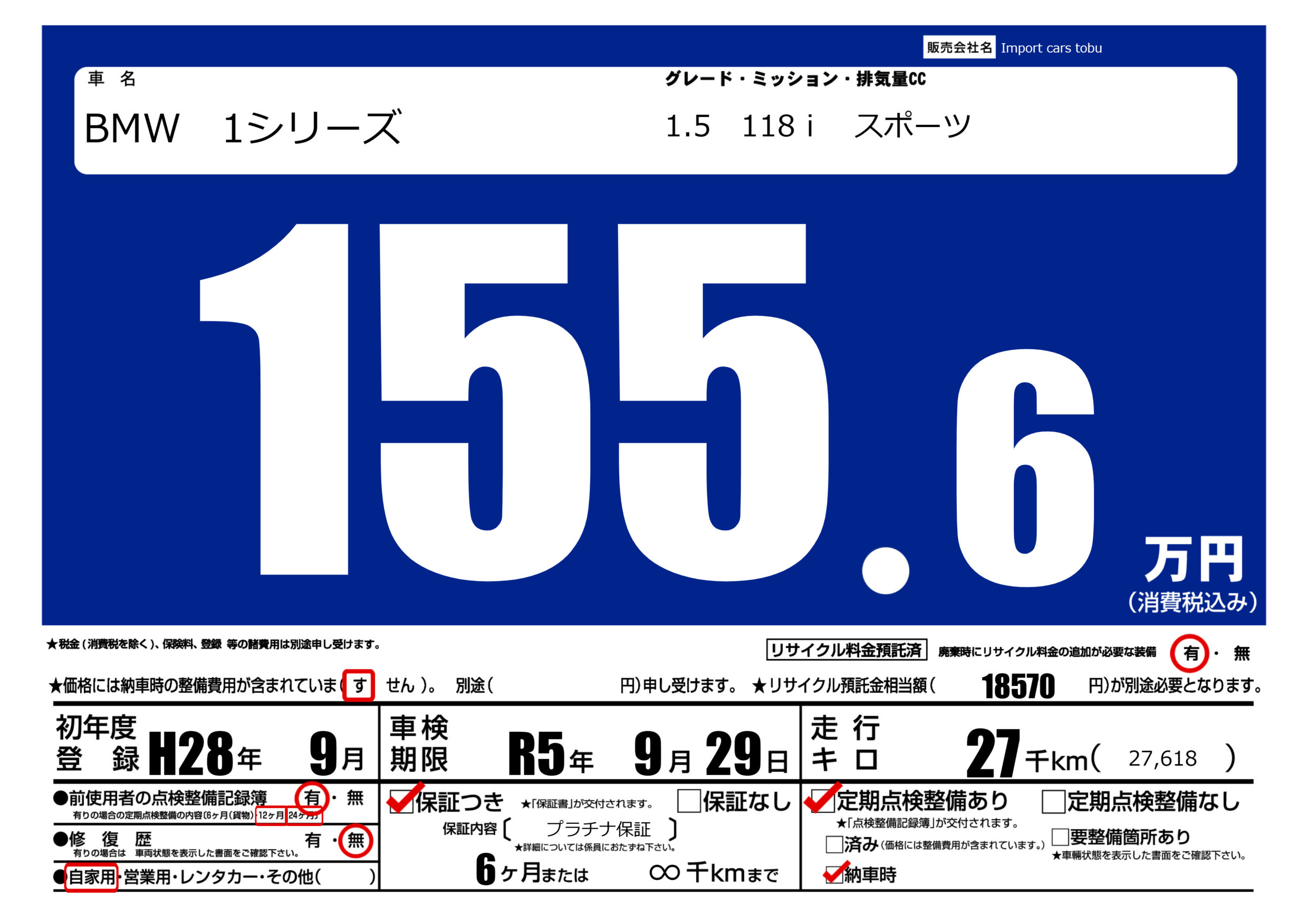 保証付き 保証内容( プラチナ保証) 6ヶ月または(∞)千kmまで |