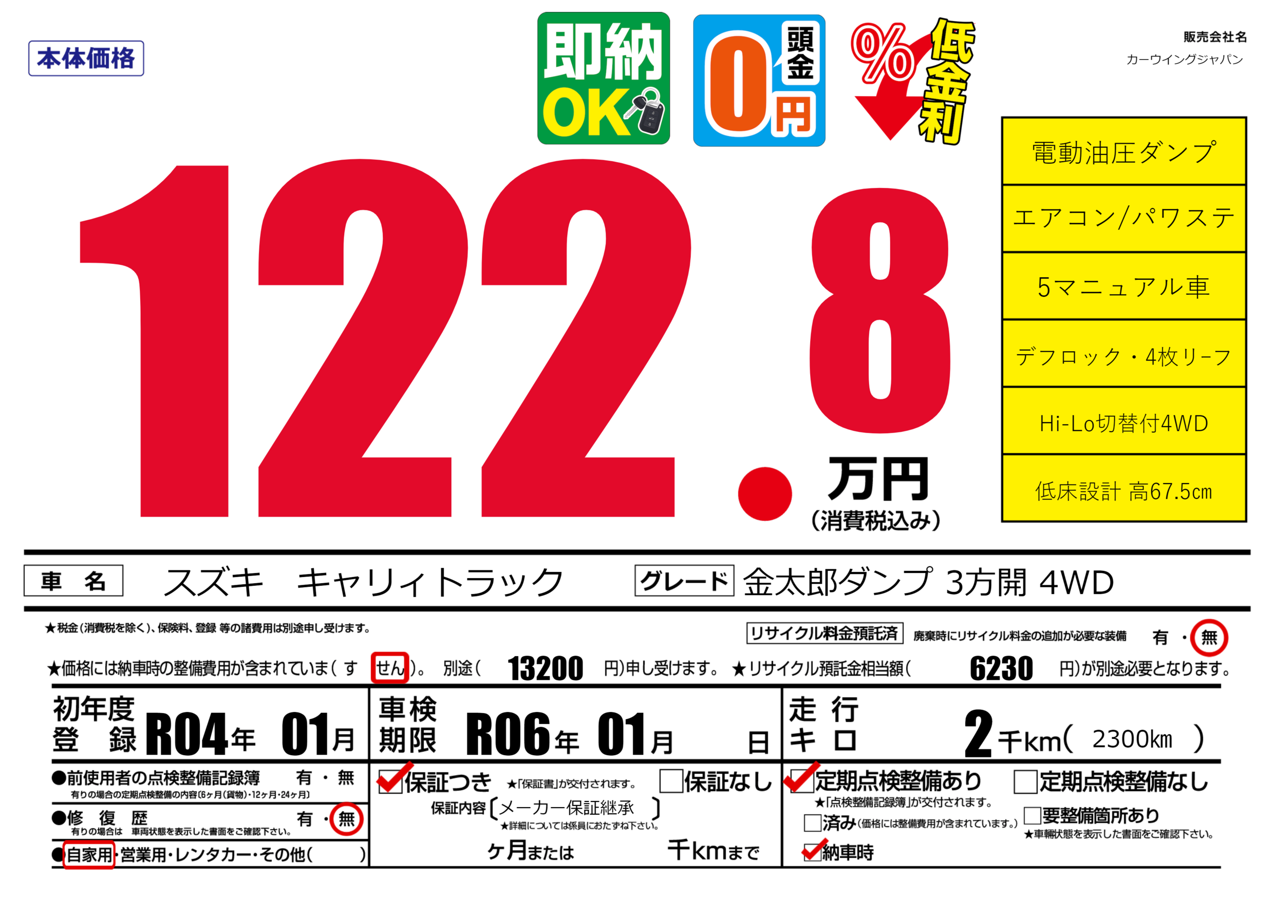 | 車検制限 | R06年 01月 - 日 | ||