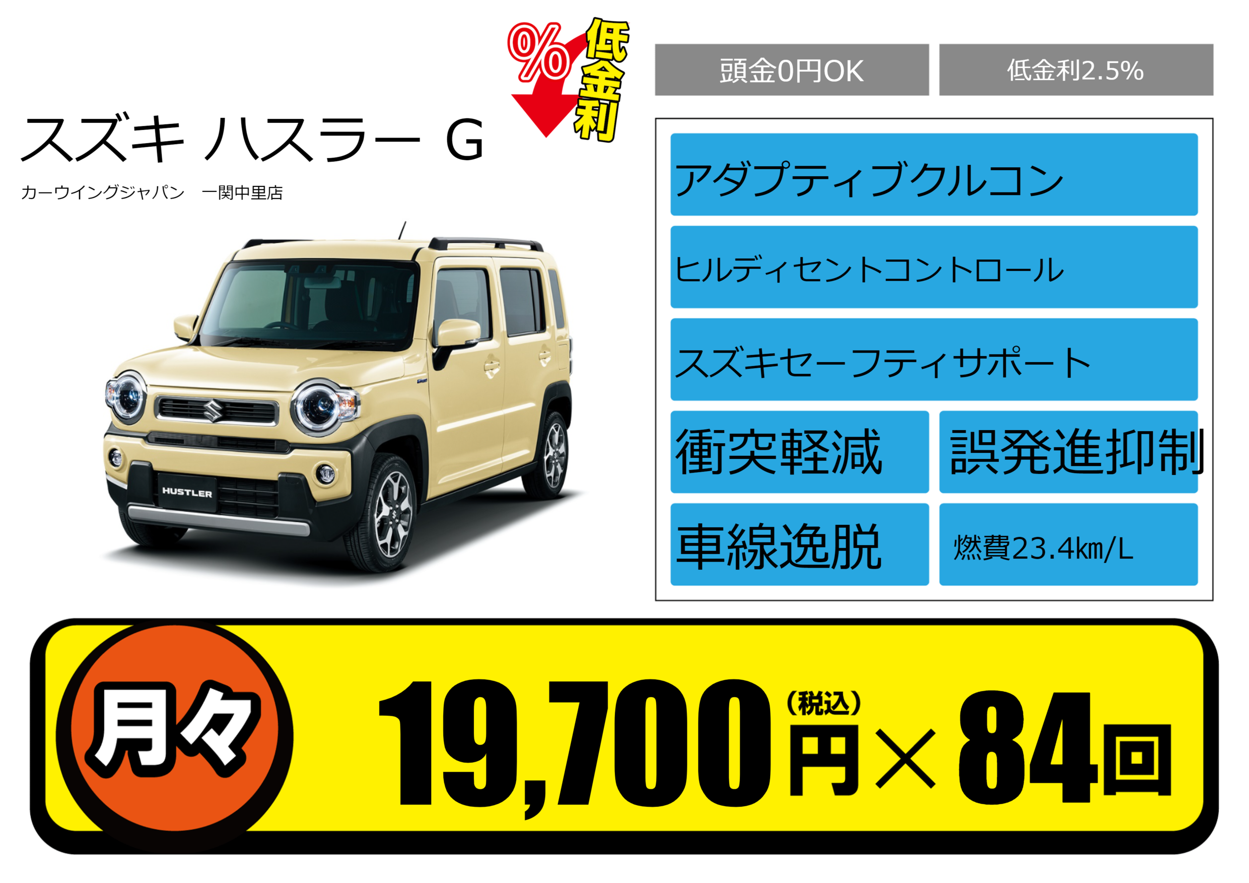 | 車名 | スズキ ハスラー G | グレード ミッション 排気量 |