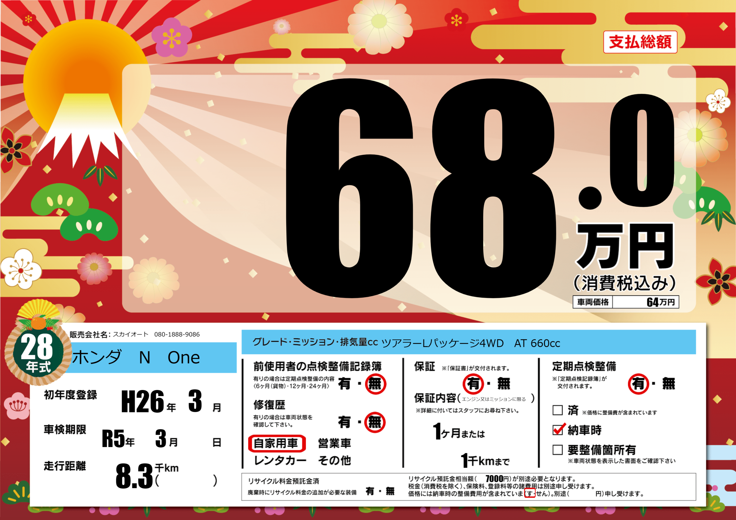 | 車名 | ホンダ N One | グレード ミッション 排気量 |
