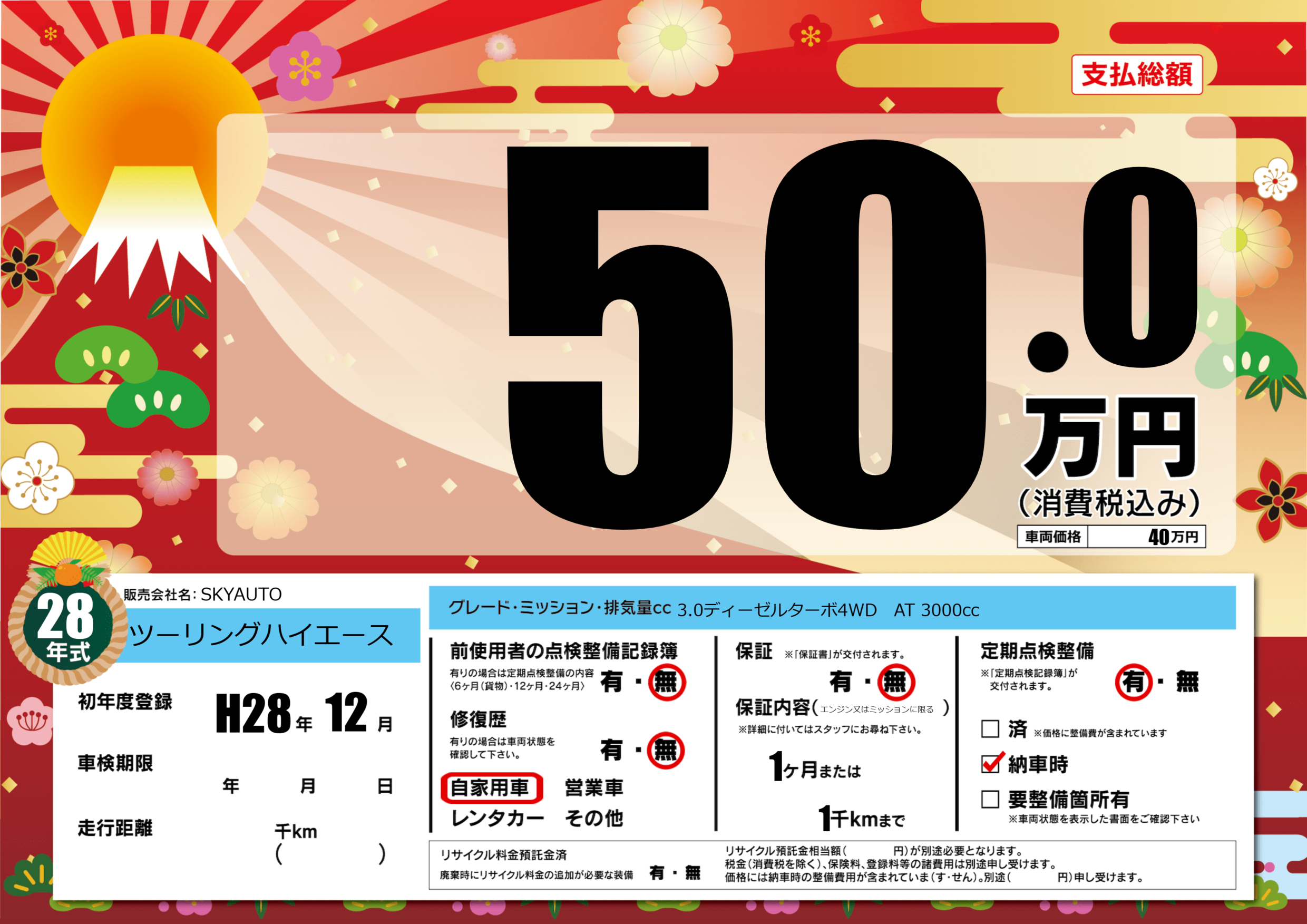 | 走行キロ | - | 初年度登録 | H28年12月 |