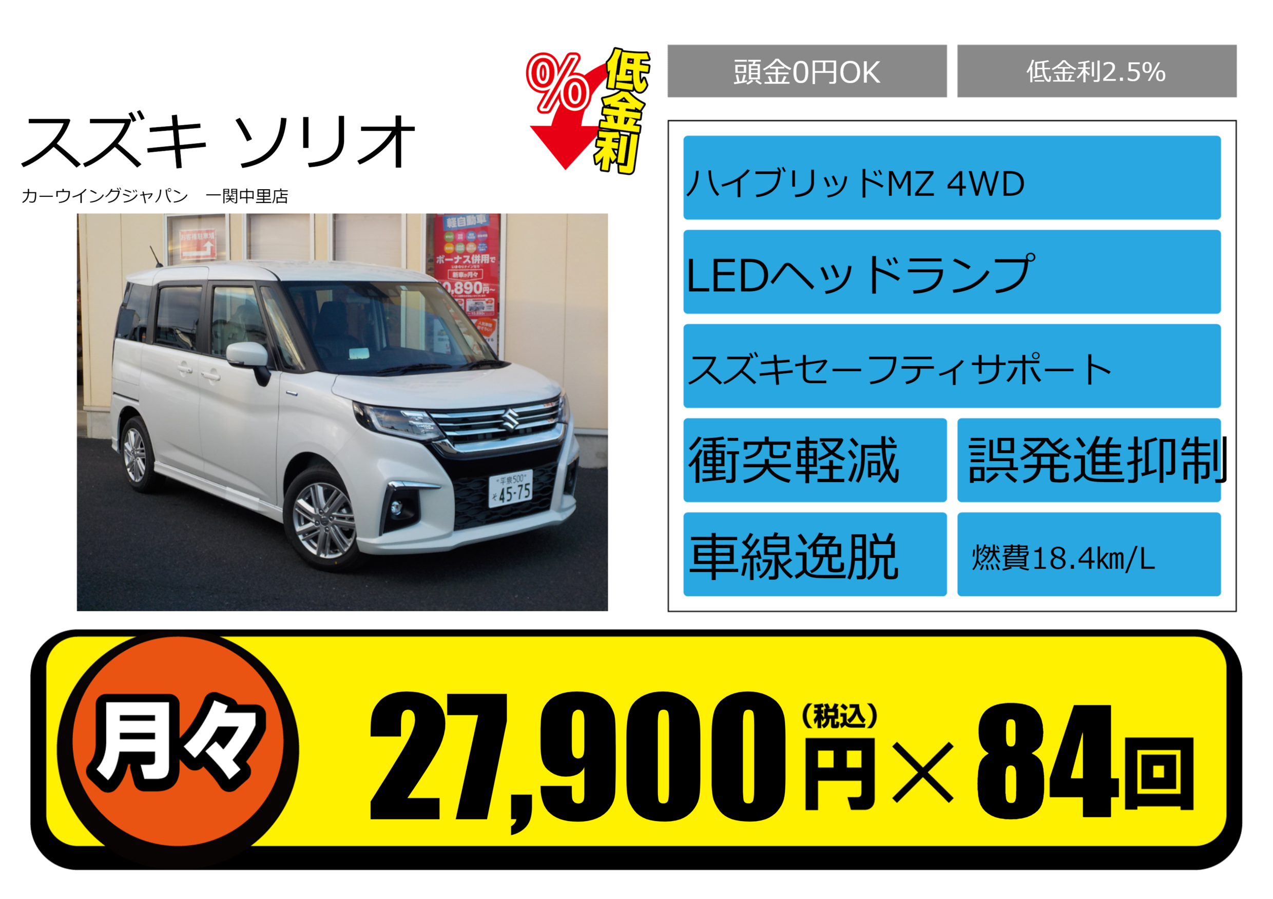 | 車名 | スズキ ソリオ | グレード ミッション 排気量 |
