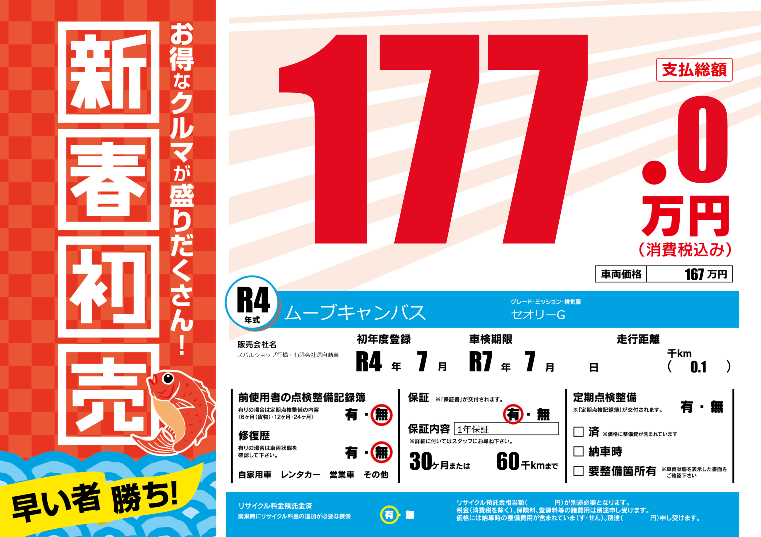 | 走行キロ | - | 初年度登録 | R4年7月 |
