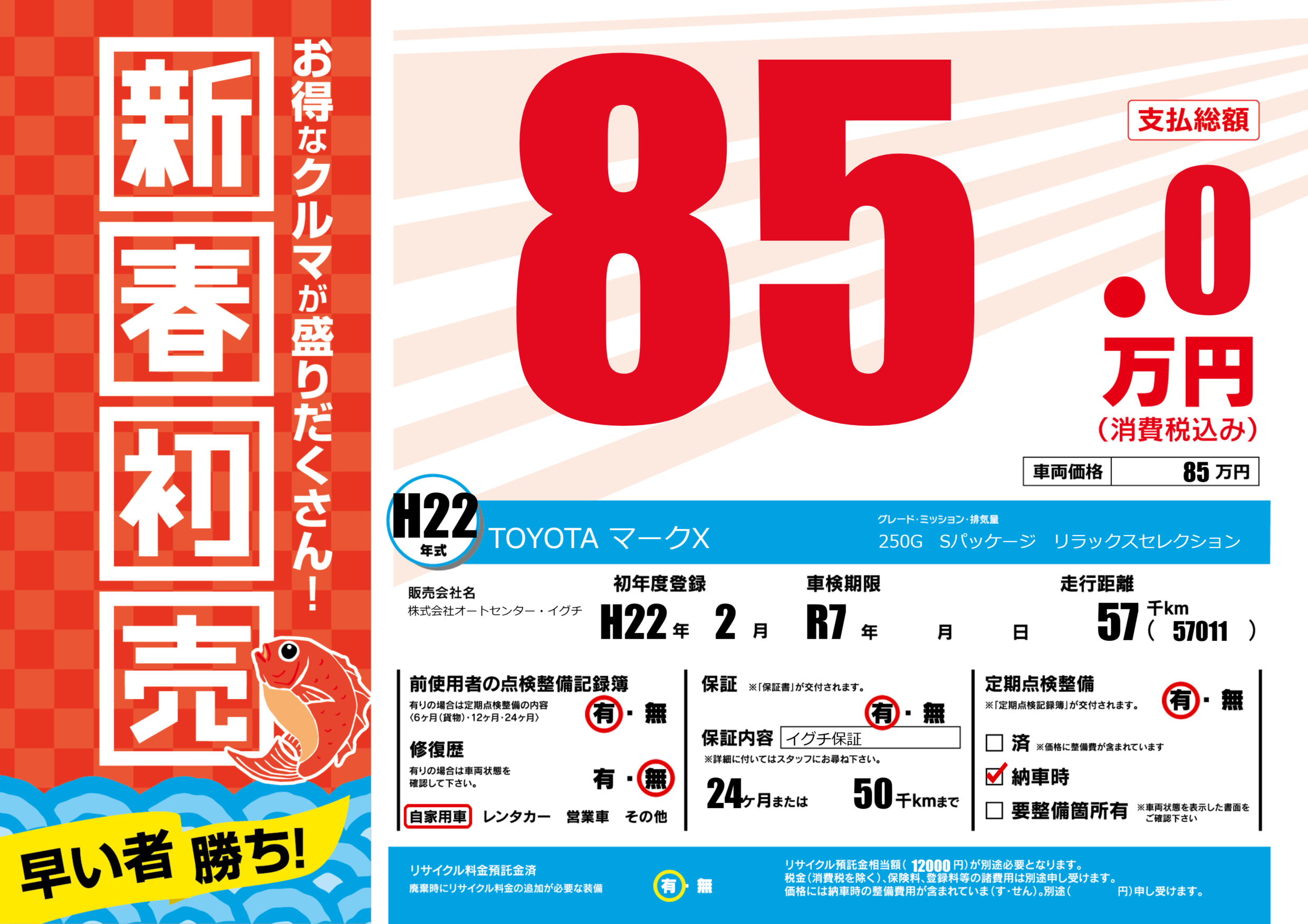 保証付き 保証内容(イグチ保証) 24ヶ月または50千km |