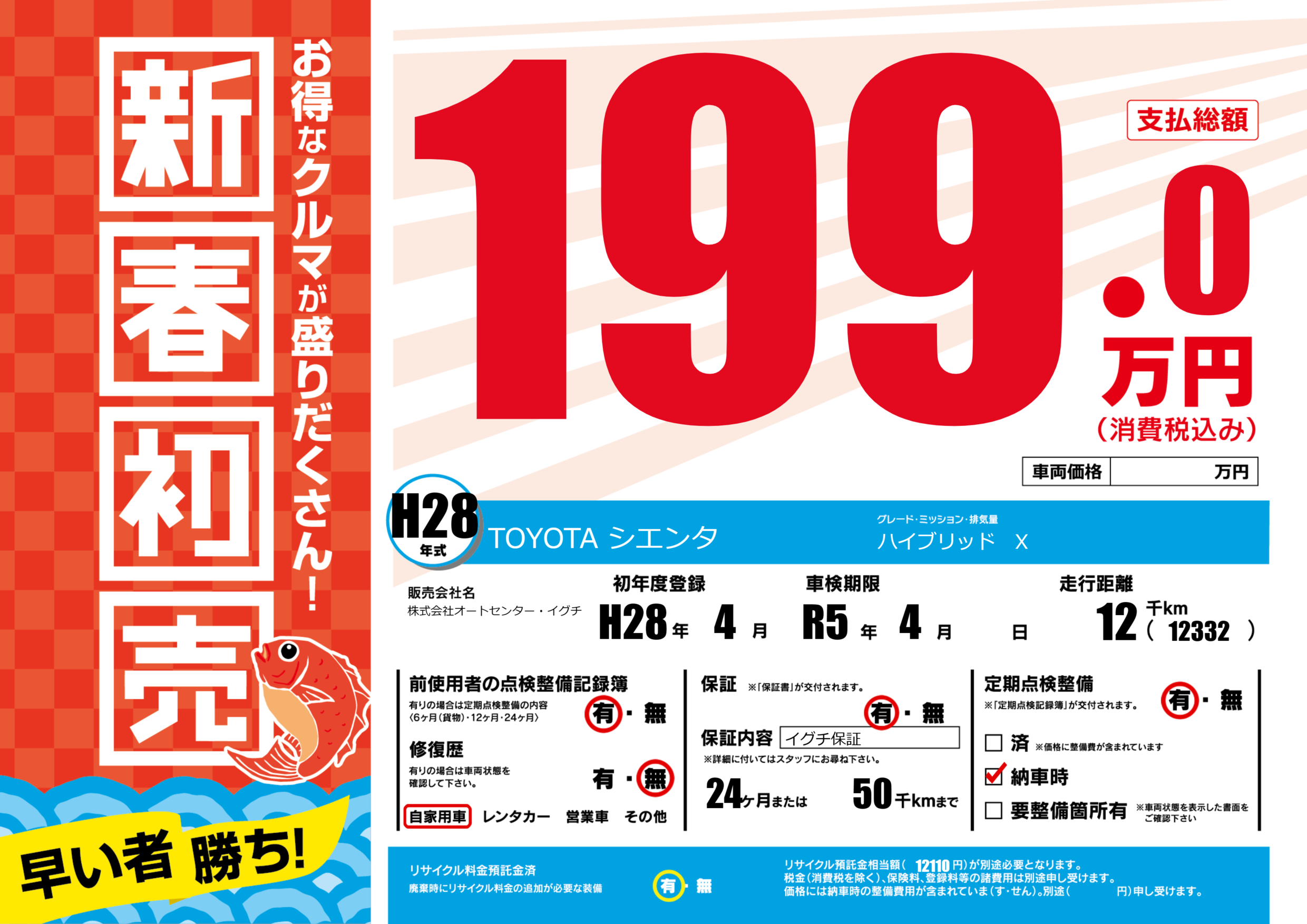 保証付き 保証内容(イグチ保証) 24ヶ月または(50)千kmまで |