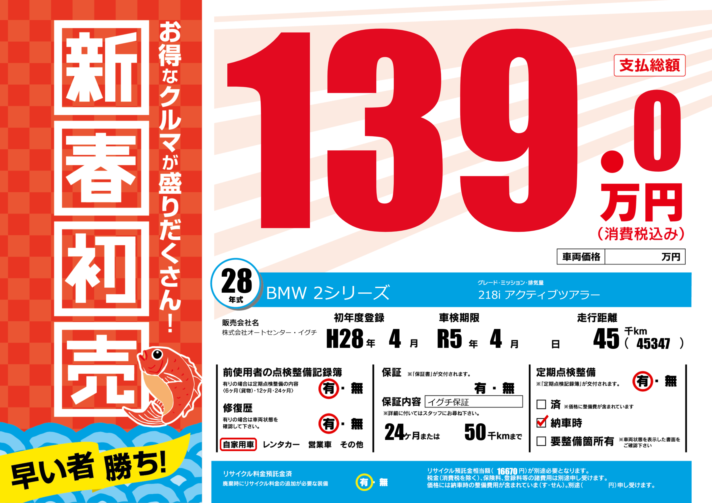 | 車名 | BMW 2シリーズ | グレード ミッション 排気量 |