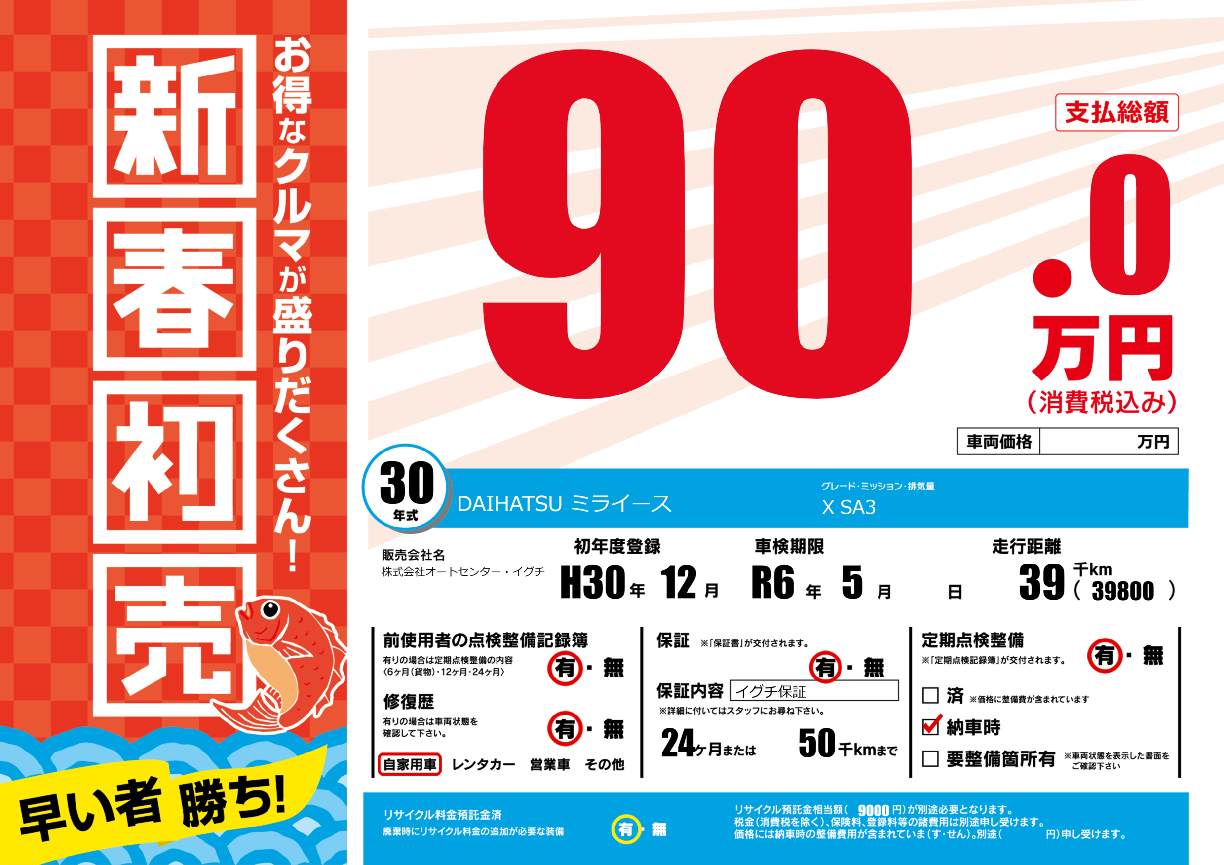保証付き 保証内容(イグチ保証) 24ヶ月または(50)千kmまで |