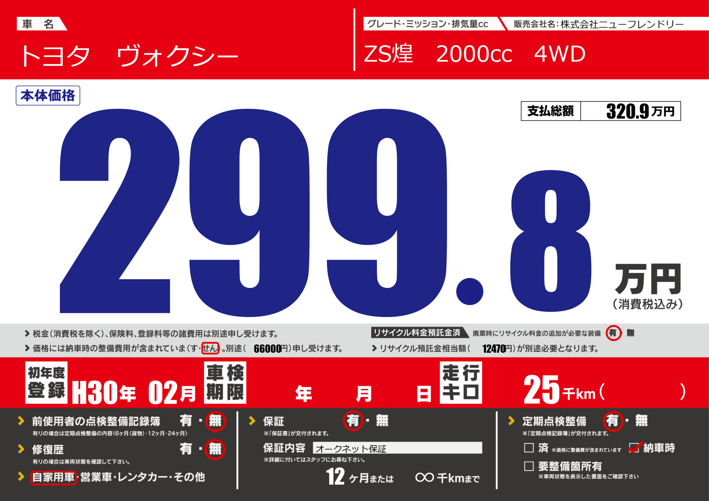 保証付き 保証内容(オークネット保証) 12ヶ月または(∞)千kmまで |