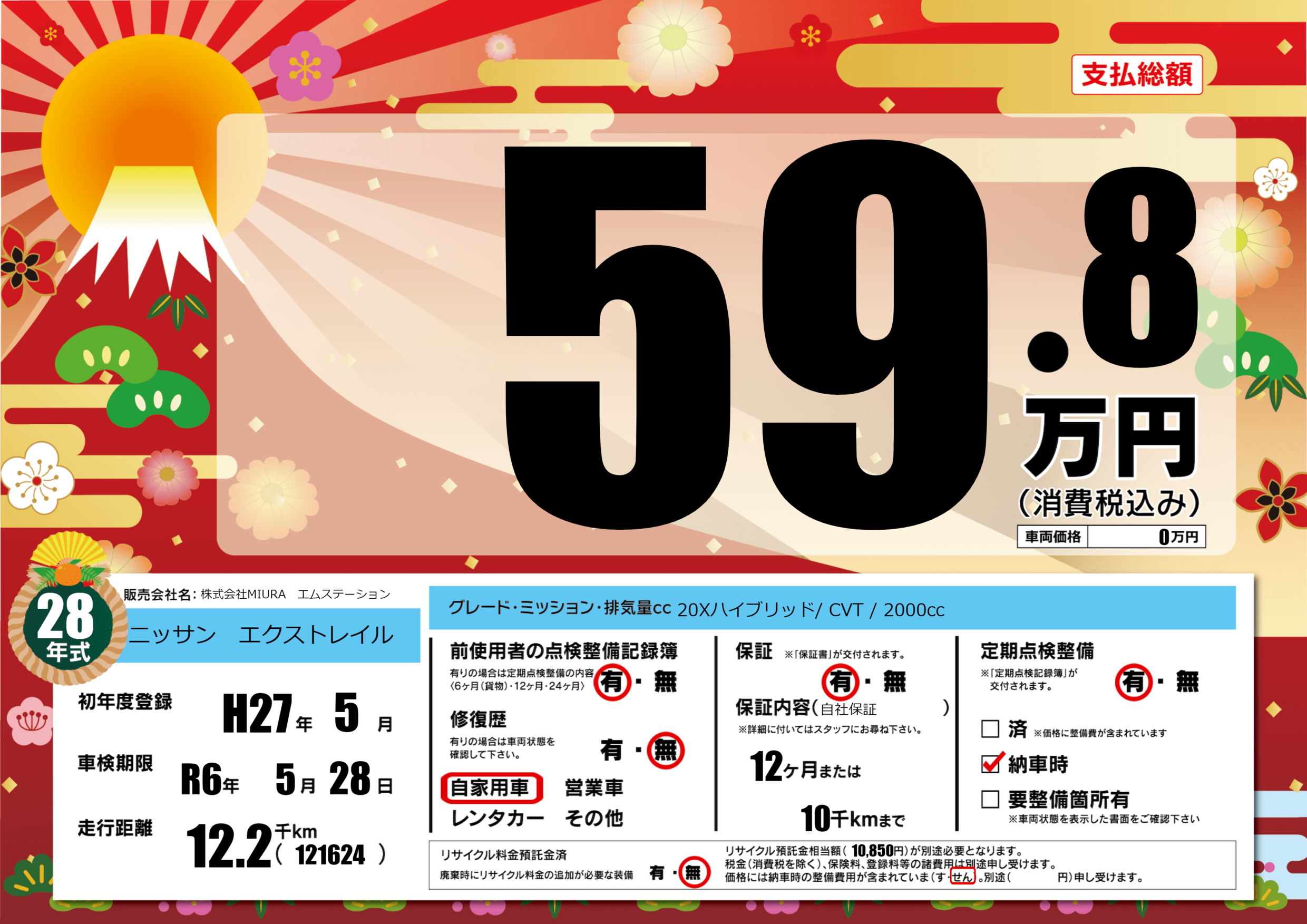 | 車名 | ニッサン エクストレイル | グレード ミッション 排気量 |