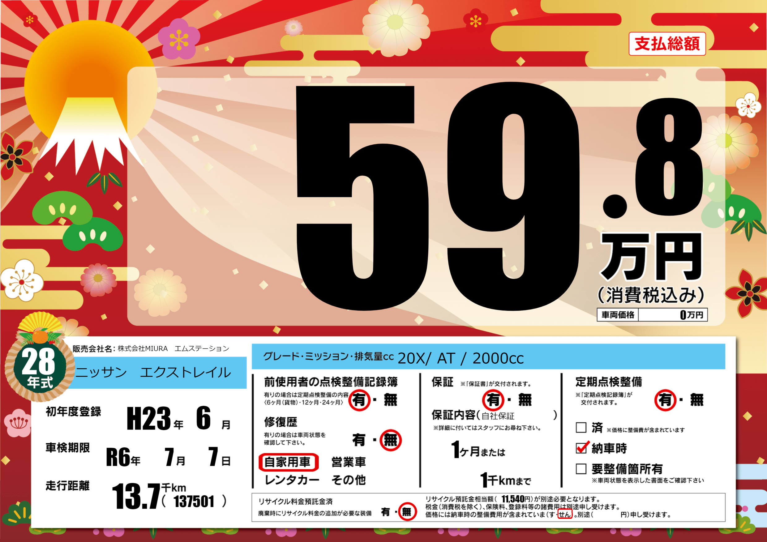 | 車検制限 | R6年 7月 7日 | ||