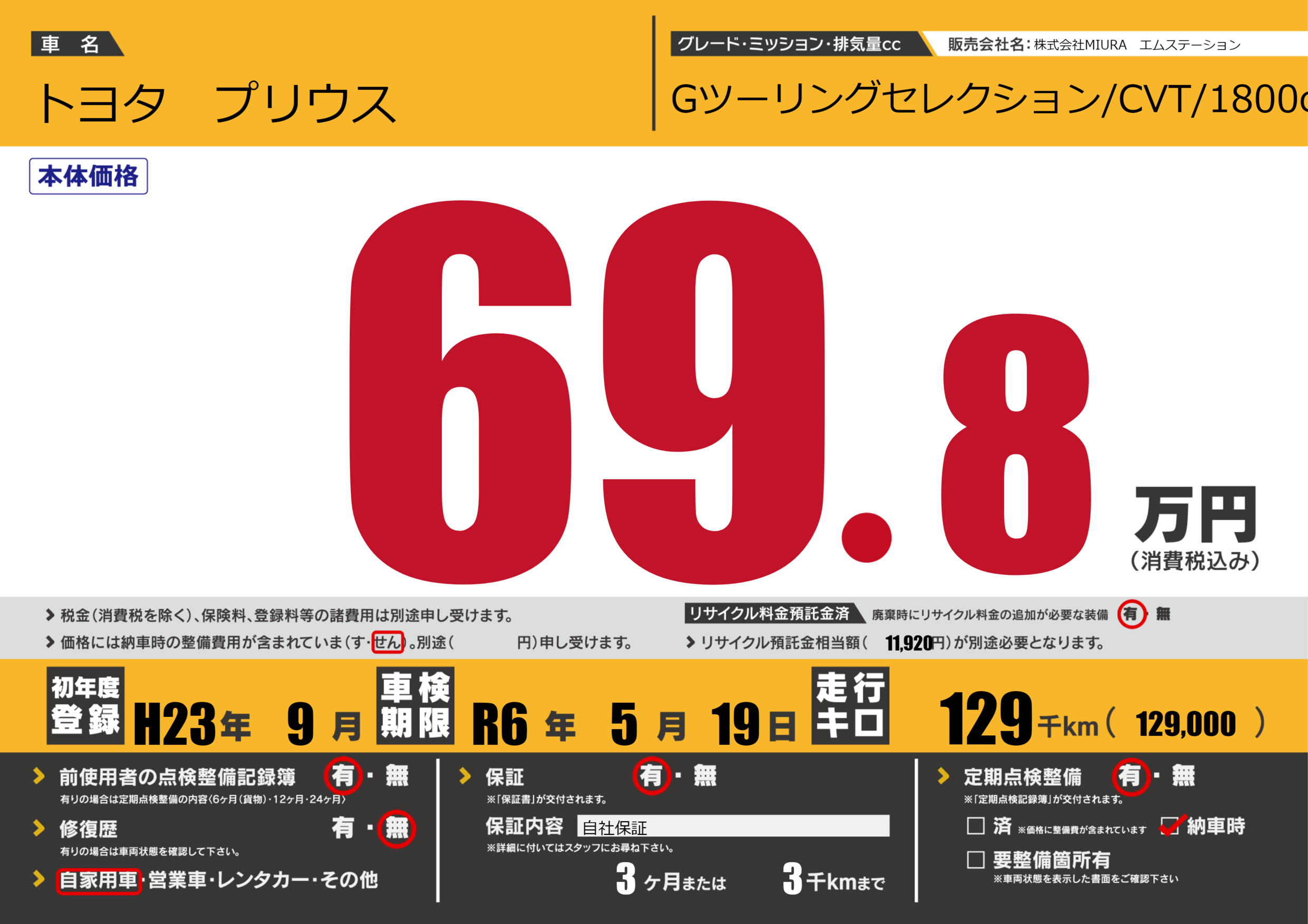 保証付き 保証内容(自社保証) 3ヶ月または3千km |